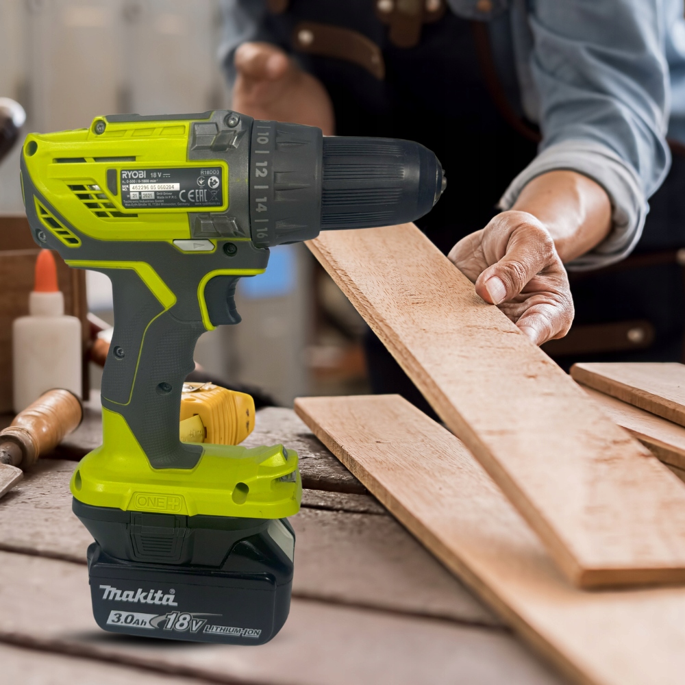 ✔ позволяет предоставлять инструменты Ryobi от батареи Makita