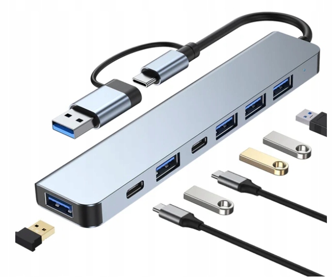 Откройте для себя универсальность и удобство с адаптером USB HUB, который превращает один порт USB-C или USB 3.0 в семь портов! Идеальное решение для современных ноутбуков и устройств с ограниченным количеством портов. Благодаря этому адаптеру вы сможете подключить все свои устройства одновременно, не выбирая, что подключать.