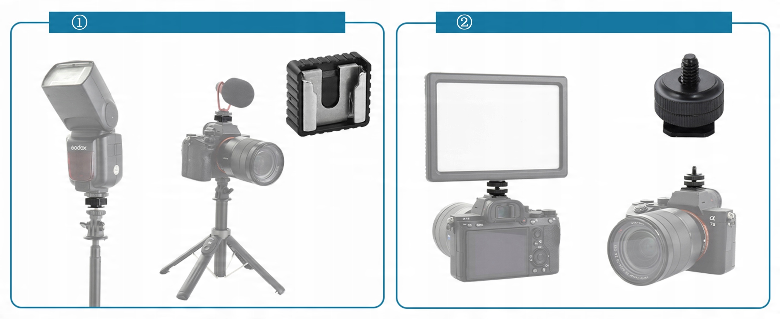 Помогает получить больше комбинаций наборов и свободы при фотографировании. Винт редукции позволяет соединять шариковую головку, обстановку, камеры DSLR с резьбовым отверстием 3/8 "-16 на баке с винтом 1/4 "-20. Совместим с головками кнопок с линзой, швейцарскими головками типа Arca и другими устройствами. Это помогает получить больше комбинаций наборов и свободы при фотографировании. 3/8 "Винтовое крепление внизу позволяет подключить большинство типов штатива или штатива. Полем Устройства со стандартным отверстием винта 1/4 в гнезде горячей вспышки. Женский адаптер 1/4 "для холодной ноги; мужской адаптер 1/4" для закрепления горячей ноги