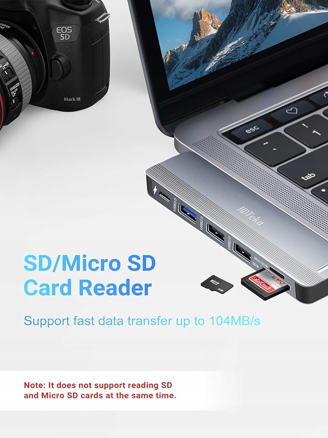 - Передача данных через USB 3.0 и устройство чтения карт SD/TF: доступен сверхскоростной порт USB 3.0 (передача данных). скорость до 5 Гбит/с) и два порта USB 2.0 для одновременного подключения жестких дисков, камер, клавиатур и других устройств. Встроенный кардридер SD/TF поддерживает емкость 1 ТБ и позволяет получать доступ к файлам на картах SD и Micro SD, а также передавать фотографии и видео со скоростью до 104 МБ/с.