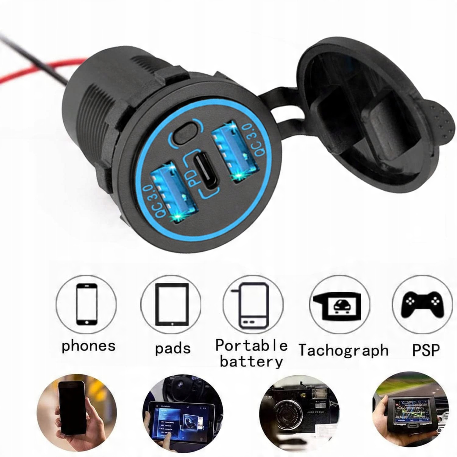 ŁADOWARKA ZASILACZ 2x USB USB-C QC3.0 WOLTOMIERZ 12-24V 10A