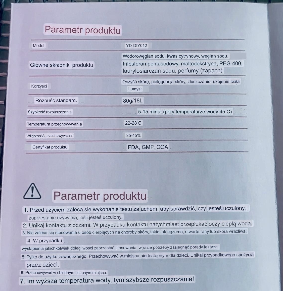 Скорость растворения: 5-15 минут при температуре воды 45 градусов