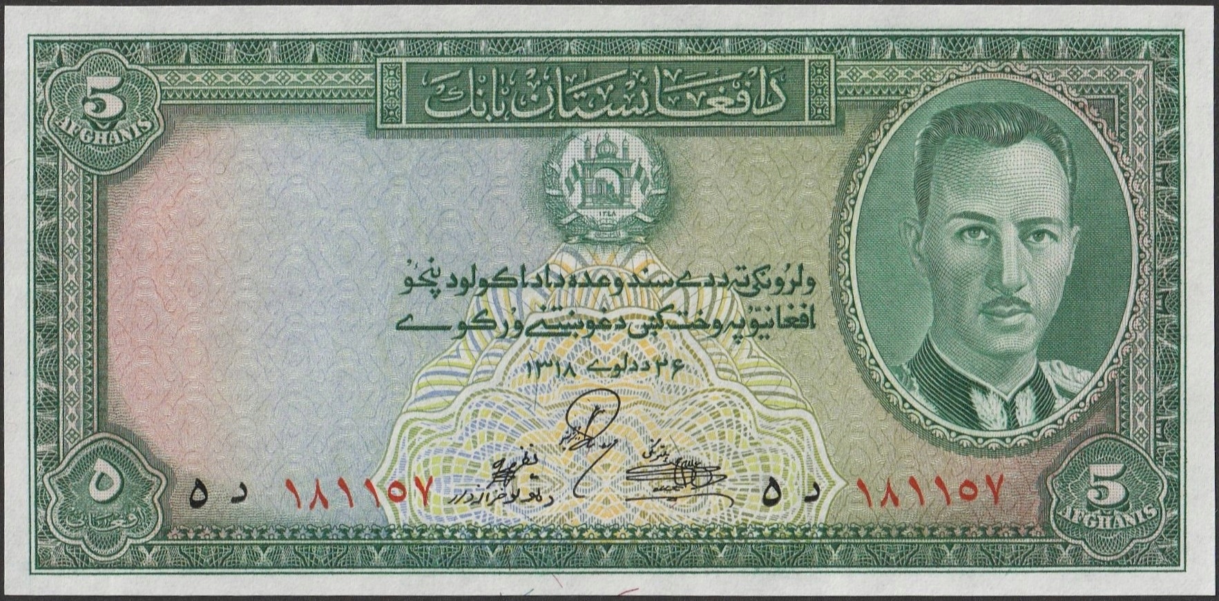 Afganistan 5 afghanis 1939 - stan bankowy UNC