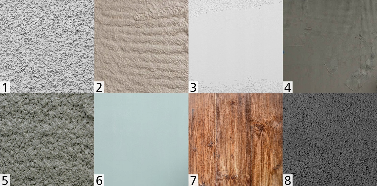 - gypsum, machine plasters (e.g. Knauf MP75), mineral, structural, acrylic, silicone so-called "lamb",