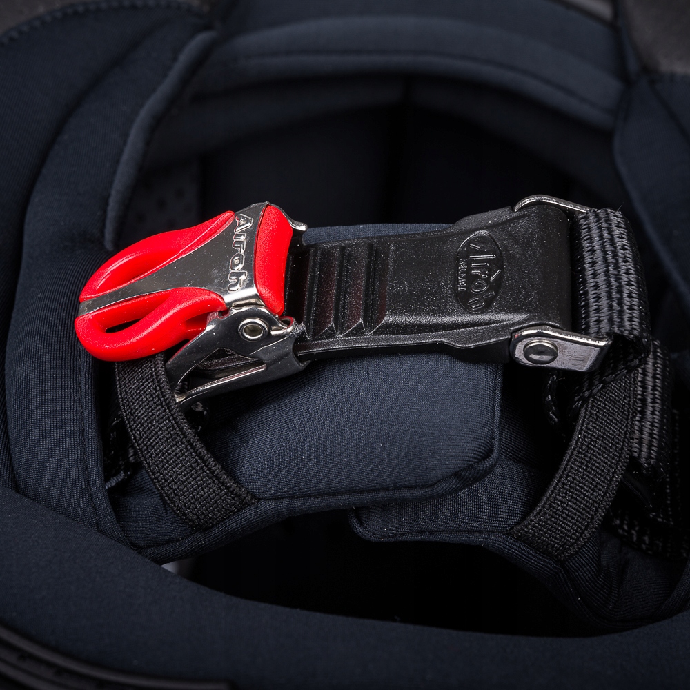 Шлем также оснащен легкой -микрометровой крепежкой, которая позволяет вам установить шлем в голову и предотвращает его разрыв в случае аварии и неопреновой крышки подбородка, предотвращая приостановку во время вождения.