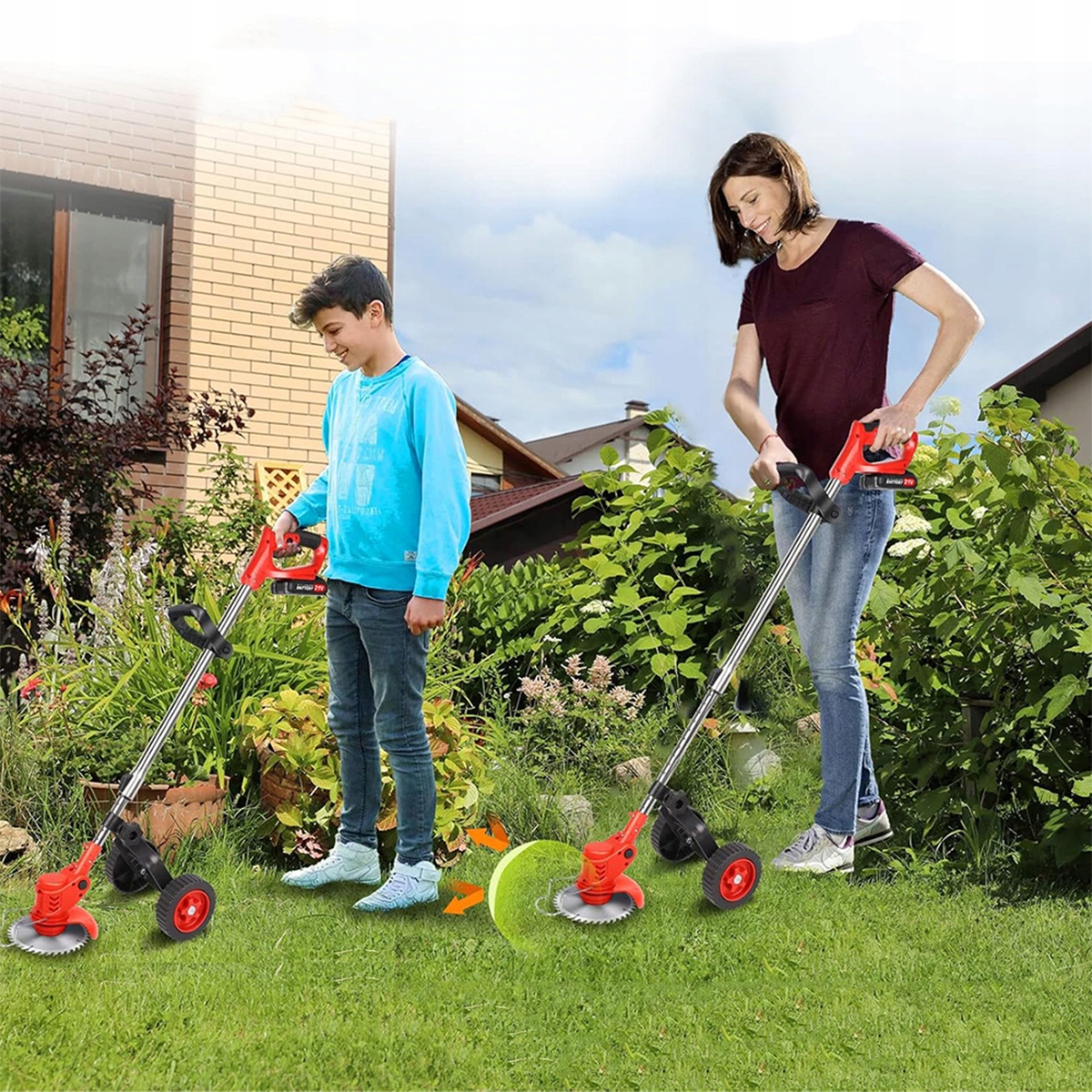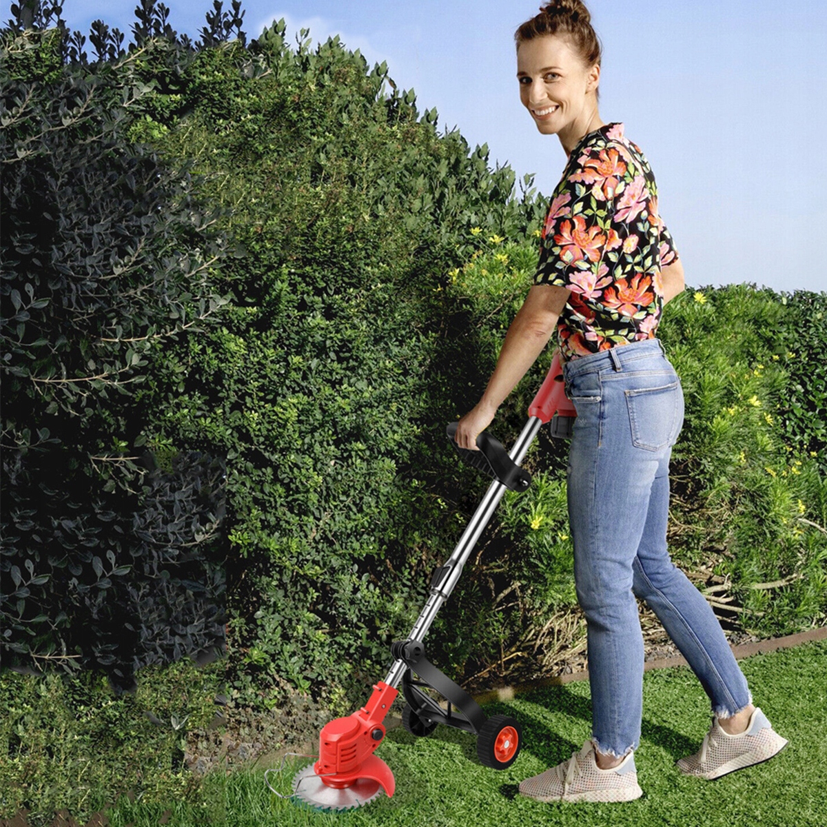 Электрический триммер для травы с питанием от аккумулятора и колесами предлагает несколько функций в одном: садовый триммер, обрезчик газона, триммер для кустов, легко справляется с различными работами по стрижке, не ограничивается кабелями. , вы можете косить где угодно.