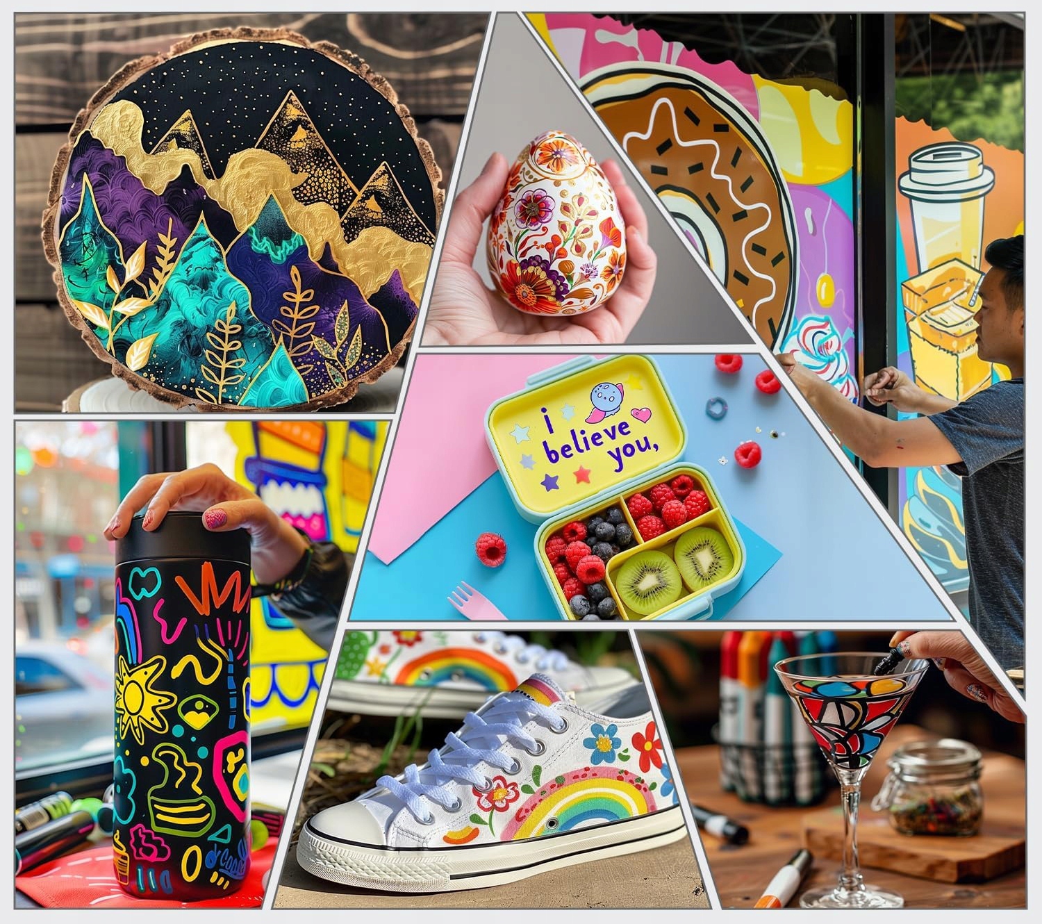 Наши акриловые маркеры идеально подходят для создания на различных поверхностях, таких как: