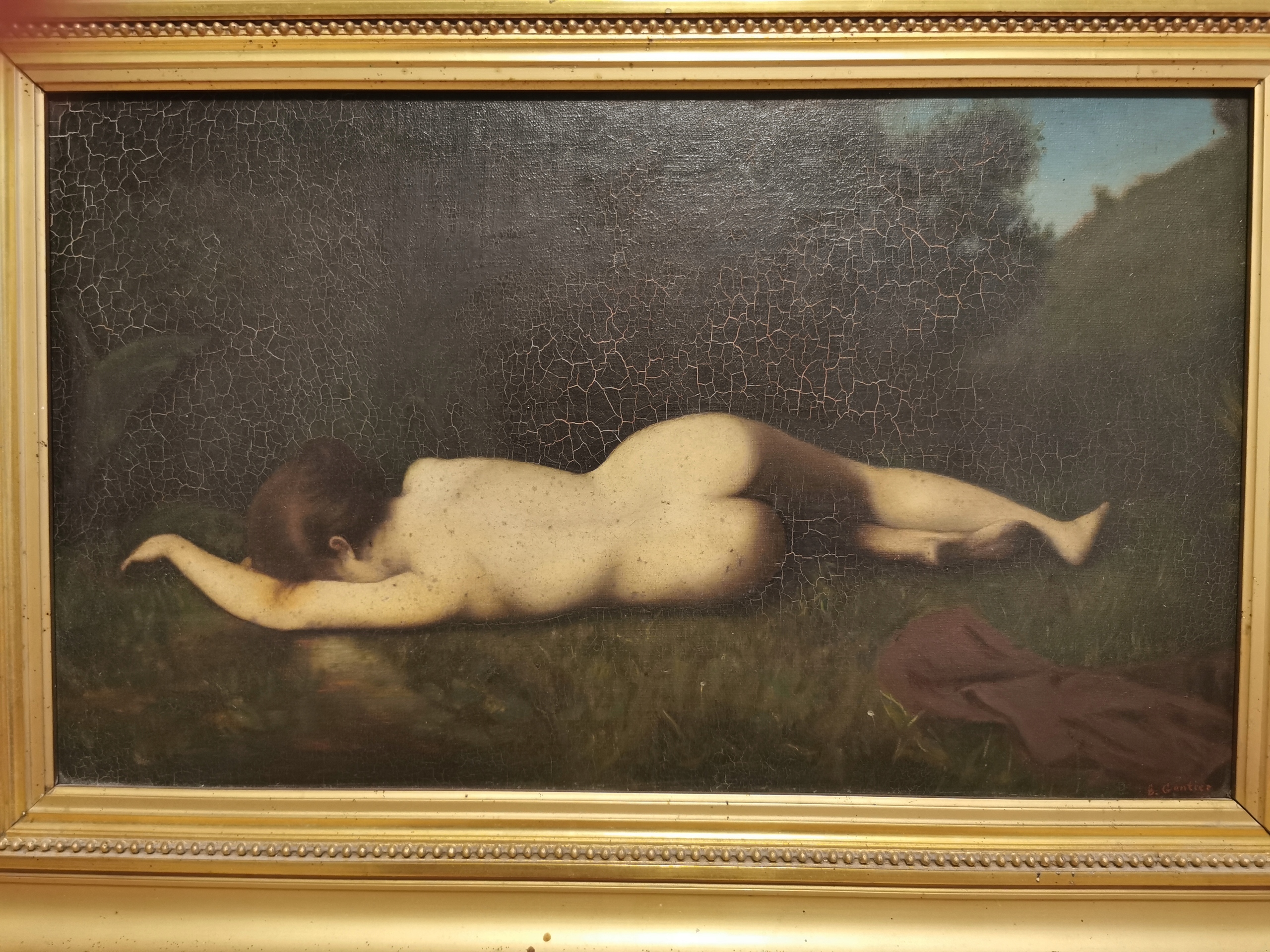 Akt w plenerze, obraz olejny XIX/XX wiek sygnowany