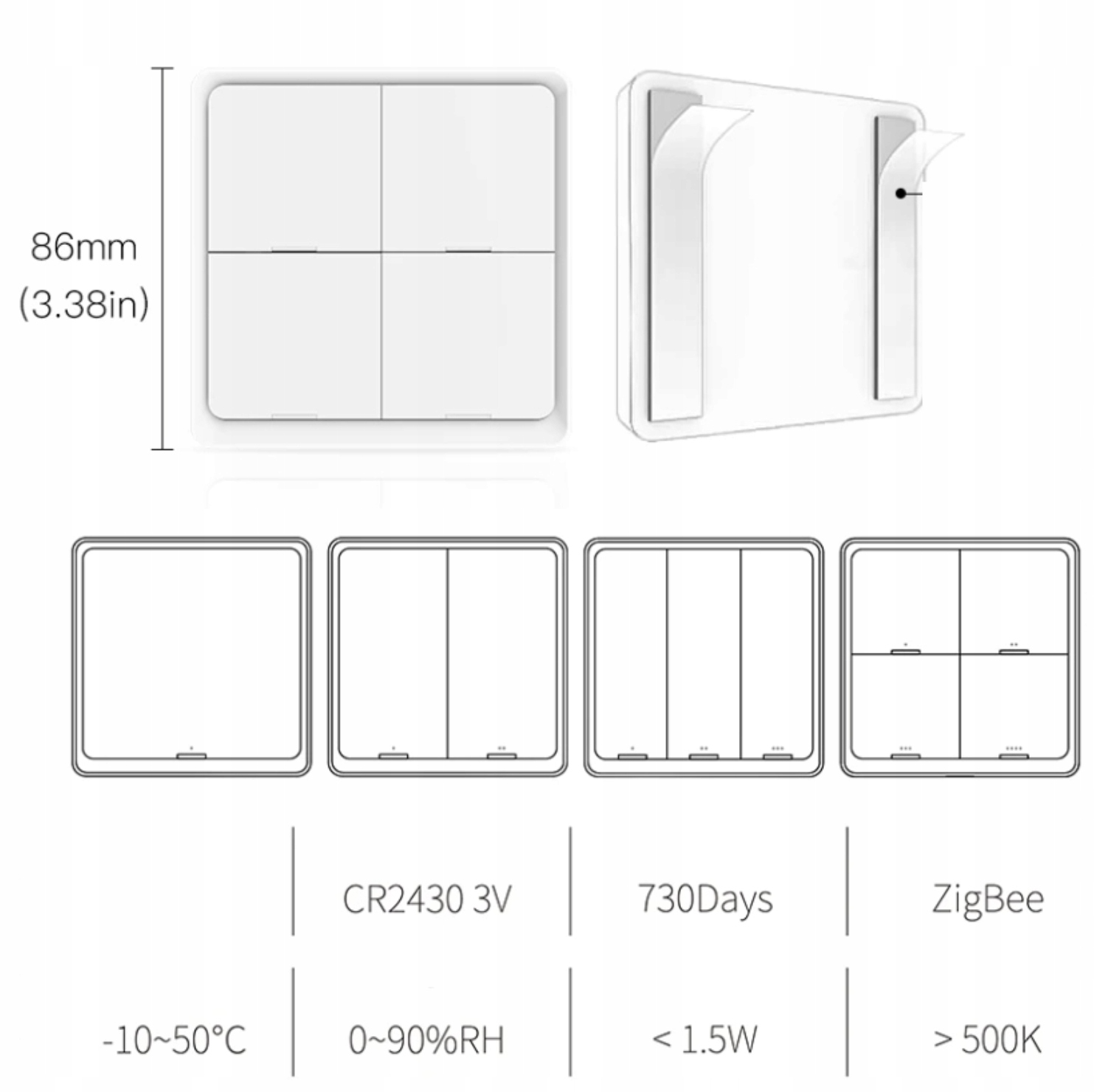БЕСПРОВОДНАЯ ДИСТАНЦИОННАЯ КНОПКА MOES 12 СЦЕН ZIGBEE TUYA С 4 КНОПКАМИ - 12 ФУНКЦИЙ