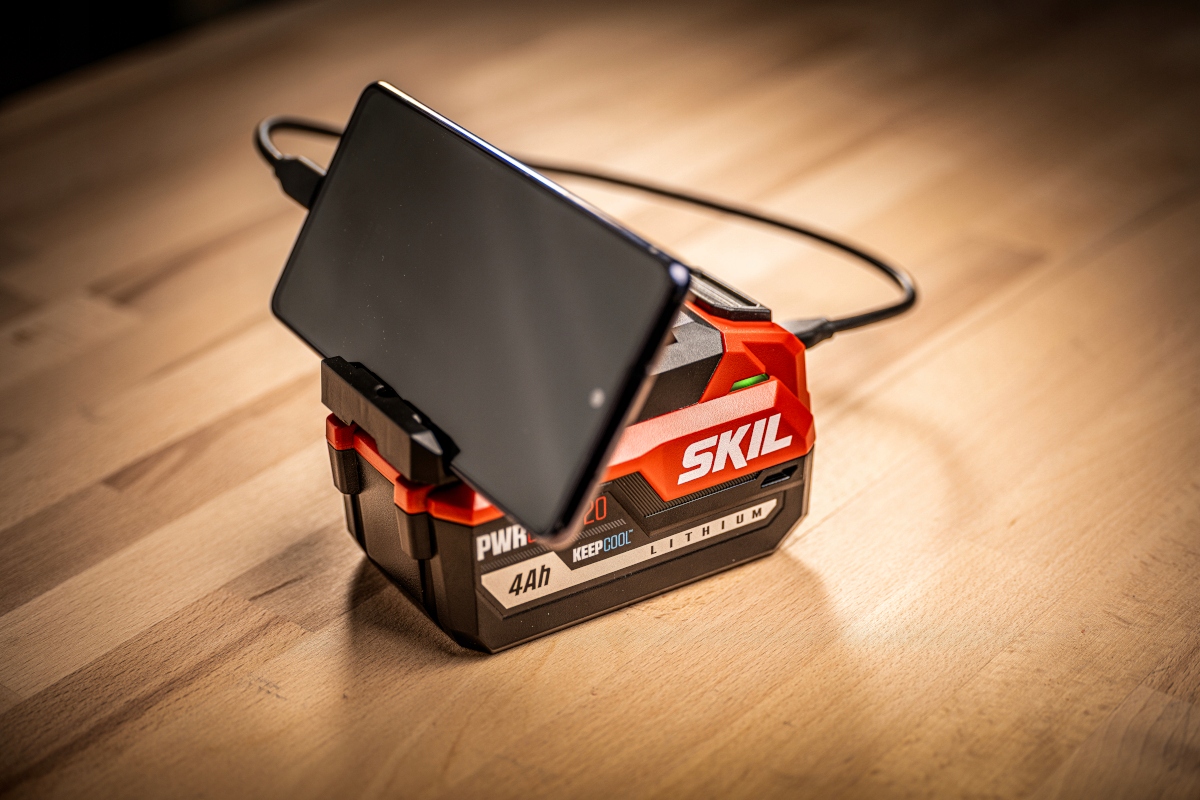 Встроенная розетка USB-C позволяет заряжать мобильные устройства (планшет, смартфон и т. д.), поэтому аккумулятор можно использовать для питания как электроинструментов SKIL, так и различных типов мобильных устройств.