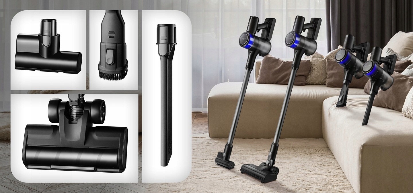 ✔️ Вертикальный пылесос — идеально подходит для чистки плоских поверхностей, таких как панели, ковры, коврики и плитка. Длинная металлическая трубка позволяет увеличить дальность уборки и легко достать пыль, например, с потолка.