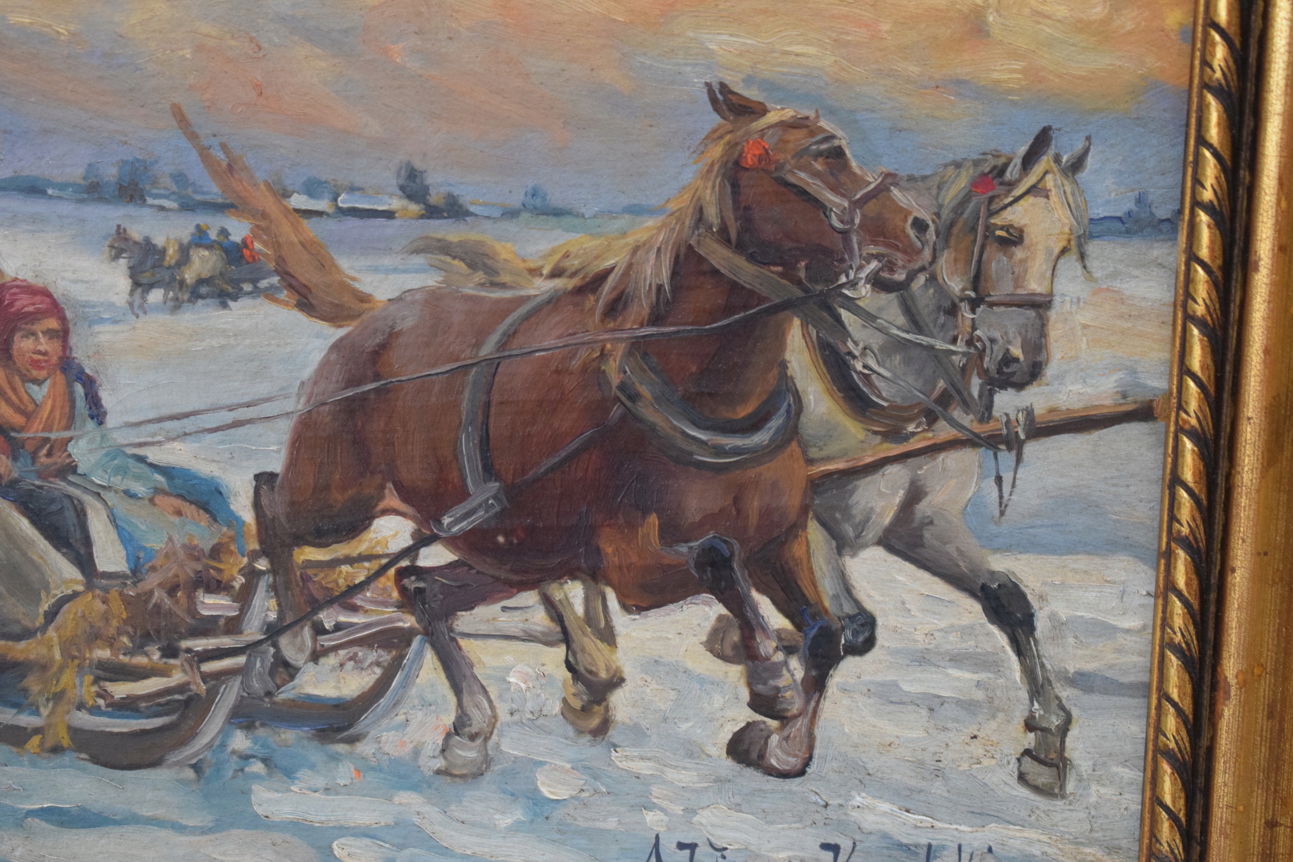 Альфред Виеруш Ковальски - Зимняя экспедиция - Sania - деревня - нефтяная картина