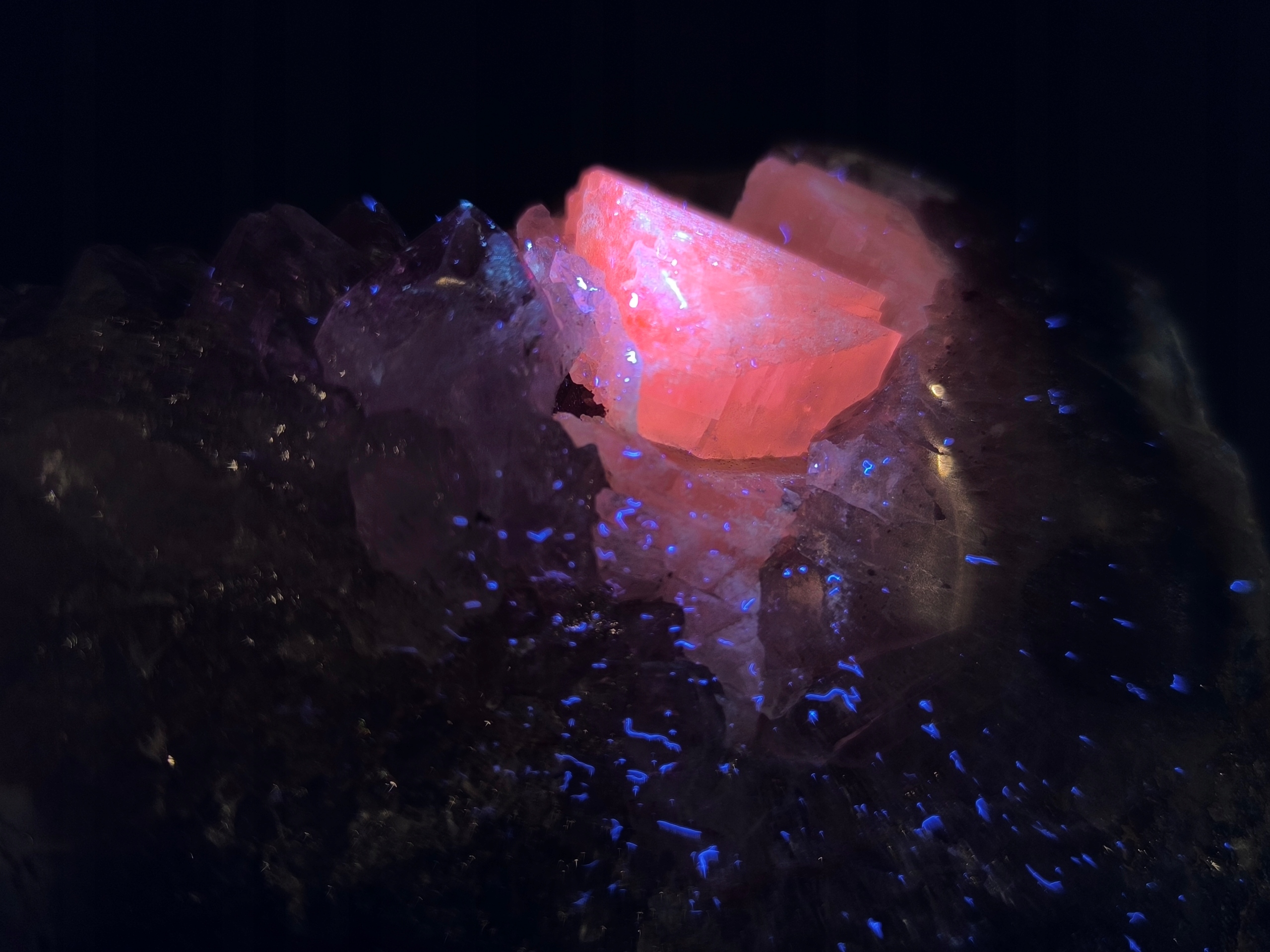 Аметист щетка, реактивный кальцит в ультрафиолеторе! Бразильские кристаллы