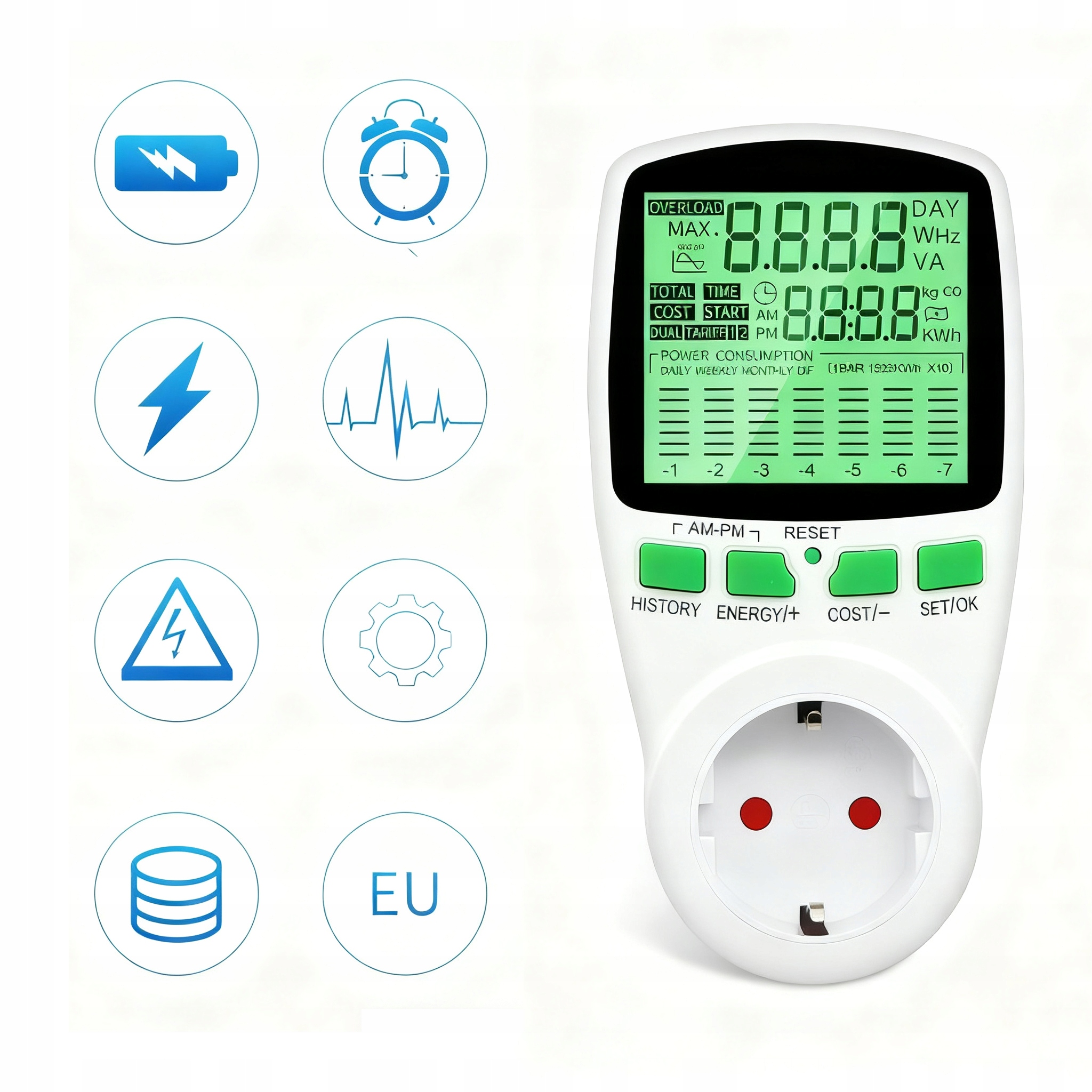 ✅ Функция подсветки отображения: оснащен светодиодным дисплеем, четко отображает такие данные, как напряжение, электричество, мощность и энергопотребление, что позволяет пользователям мониторинг пользователей реального потребления энергии.