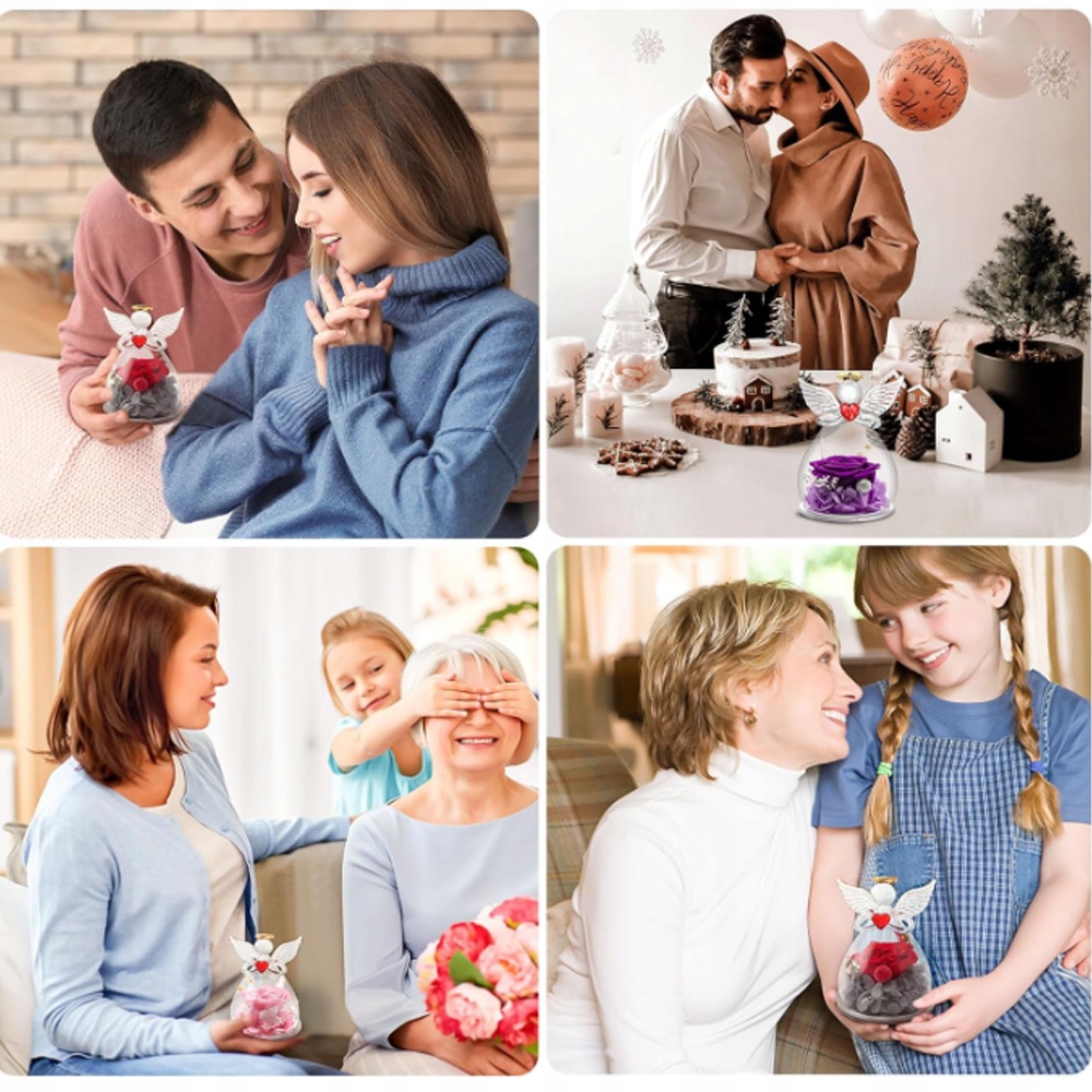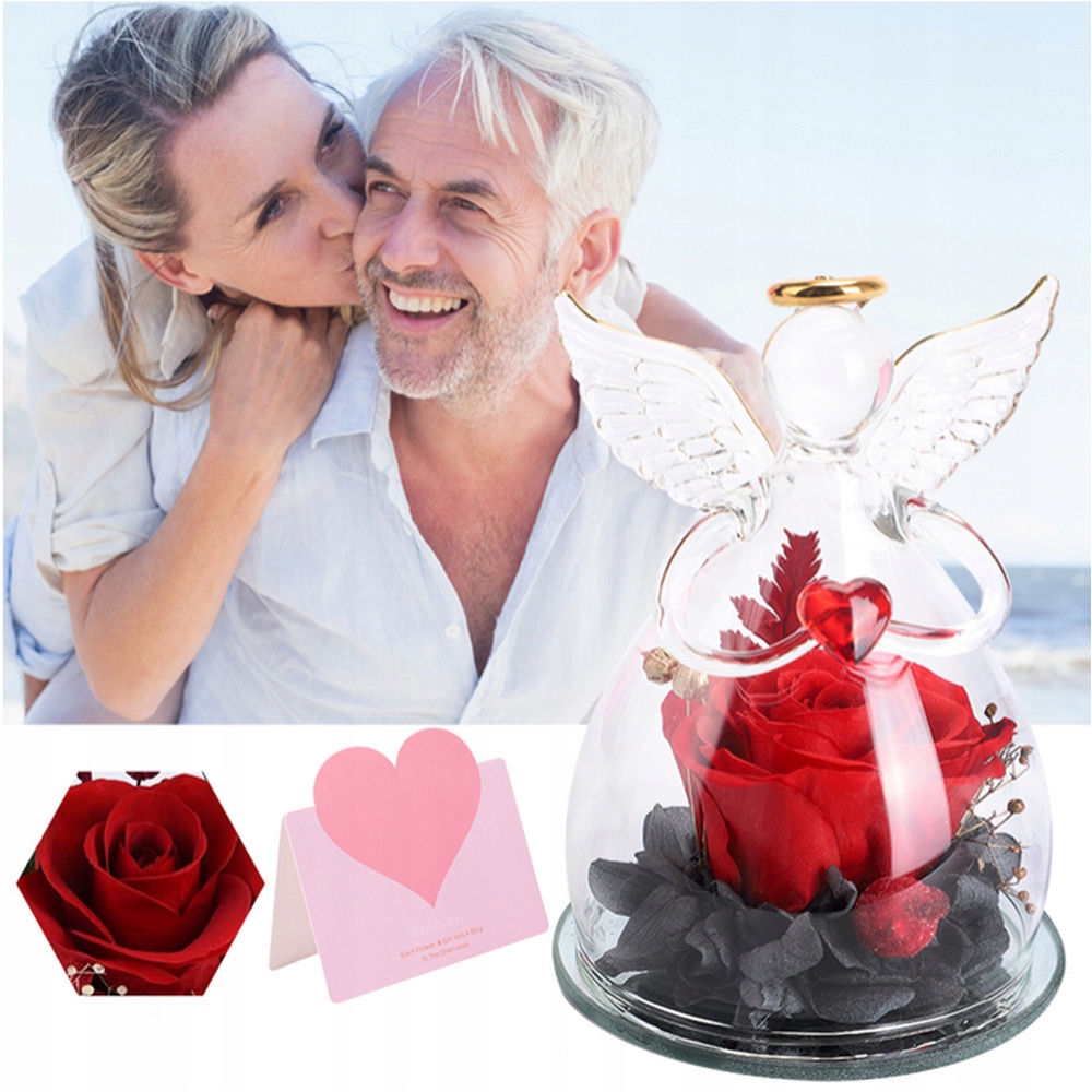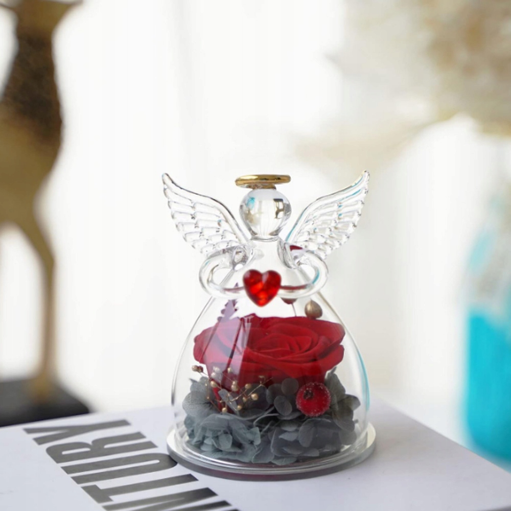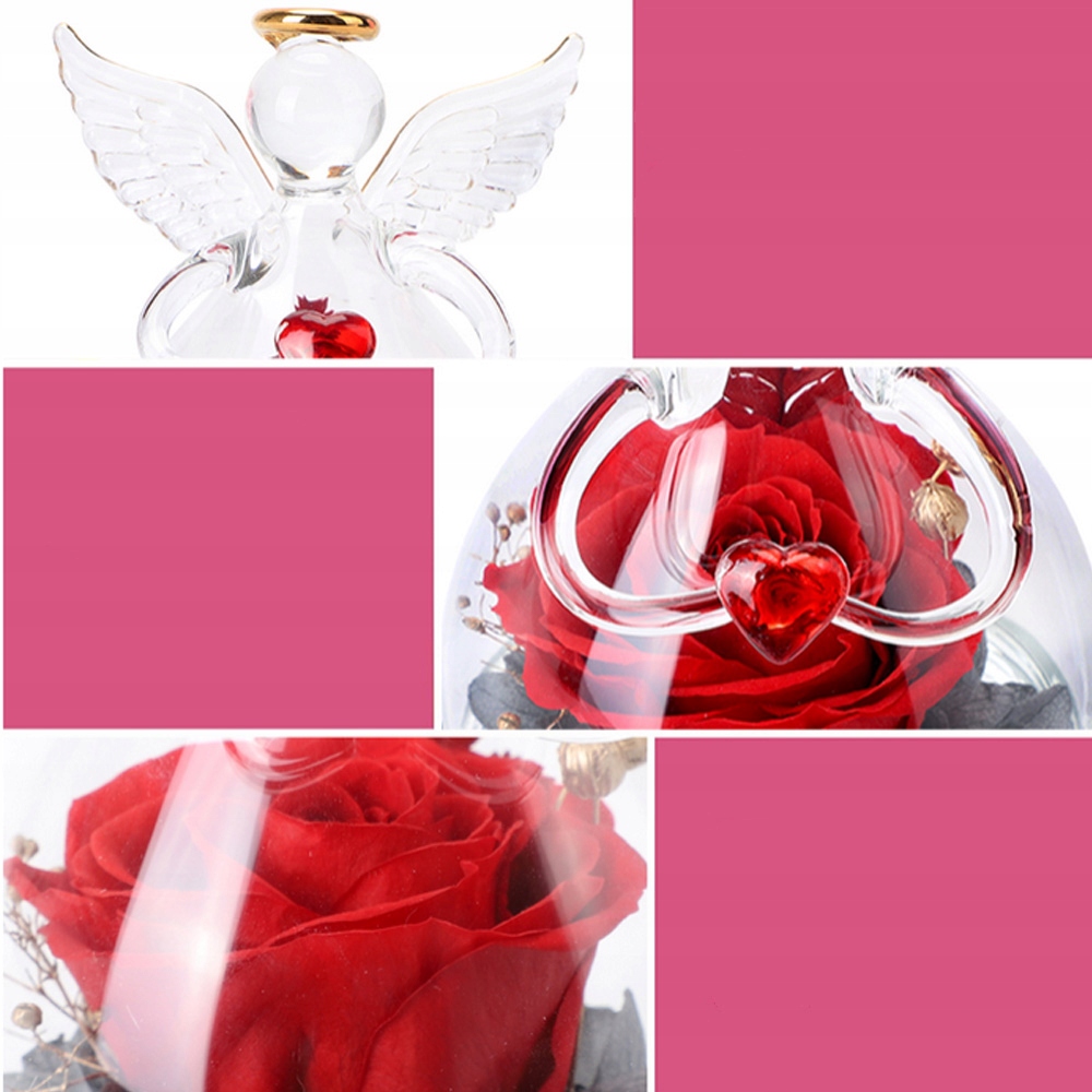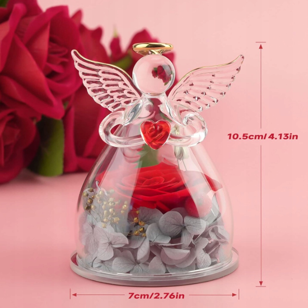 - -Сохраненная вечная роза изготовлена из 100% живых цветов, а ангел изготовлен из высококачественного термостойкого боросиликатного стекла.