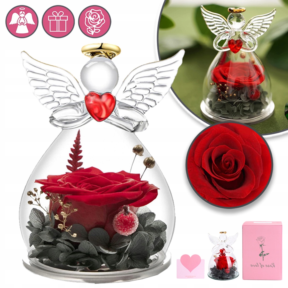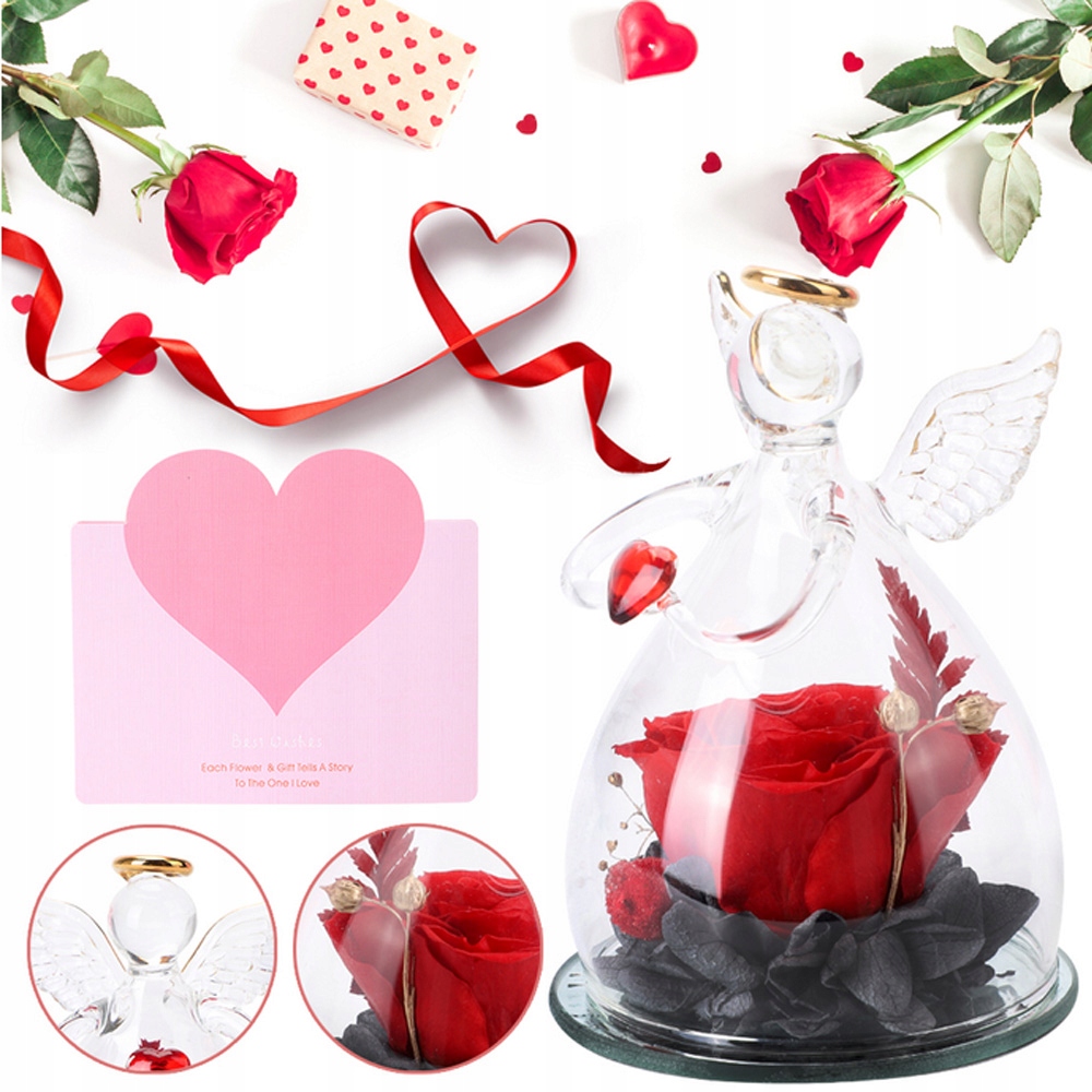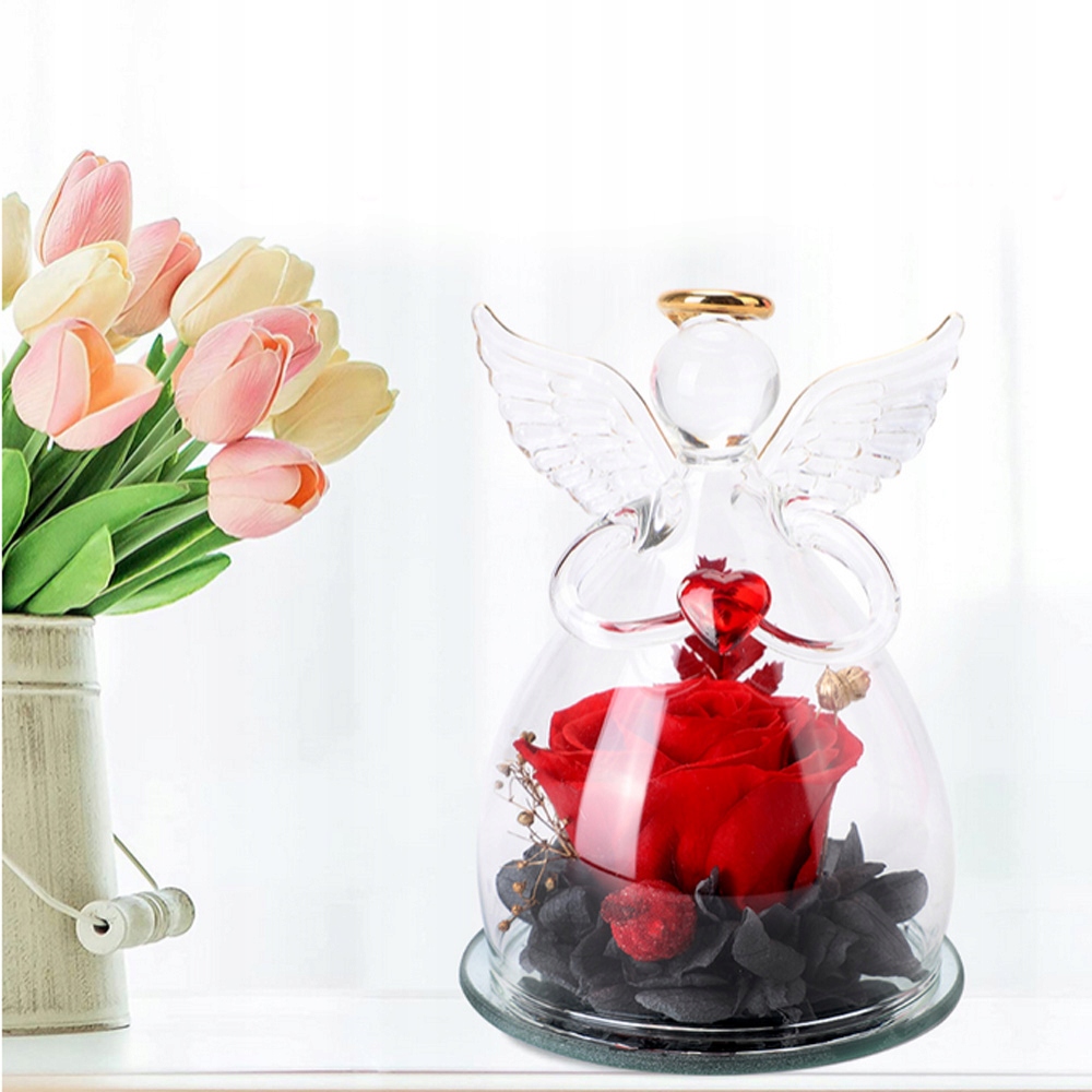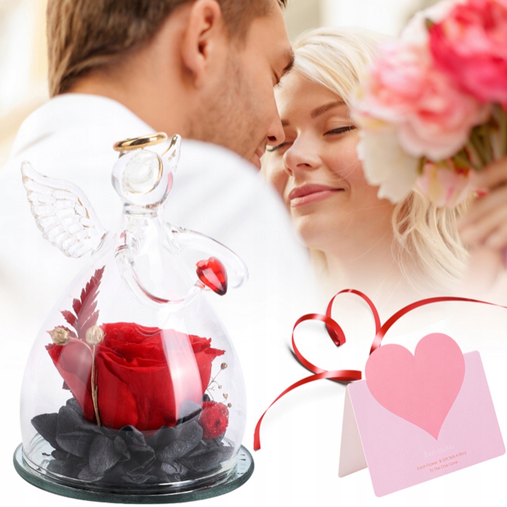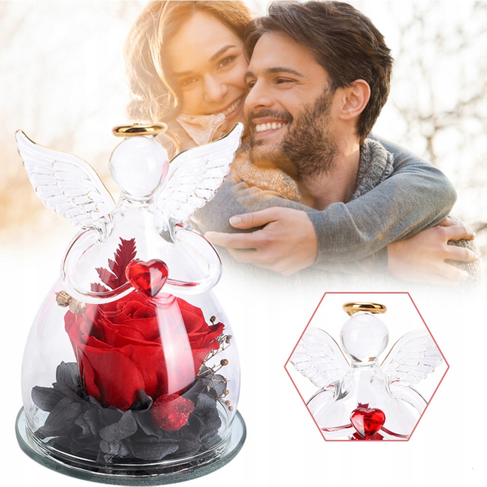 АНГЕЛ ОРНАМЕНТ ВІЧНА РОЗА ЗІ СКЛОМ ПОДАРУНОК НА ДЕНЬ НАРОДЖЕННЯ ВАЛЕНТИНА