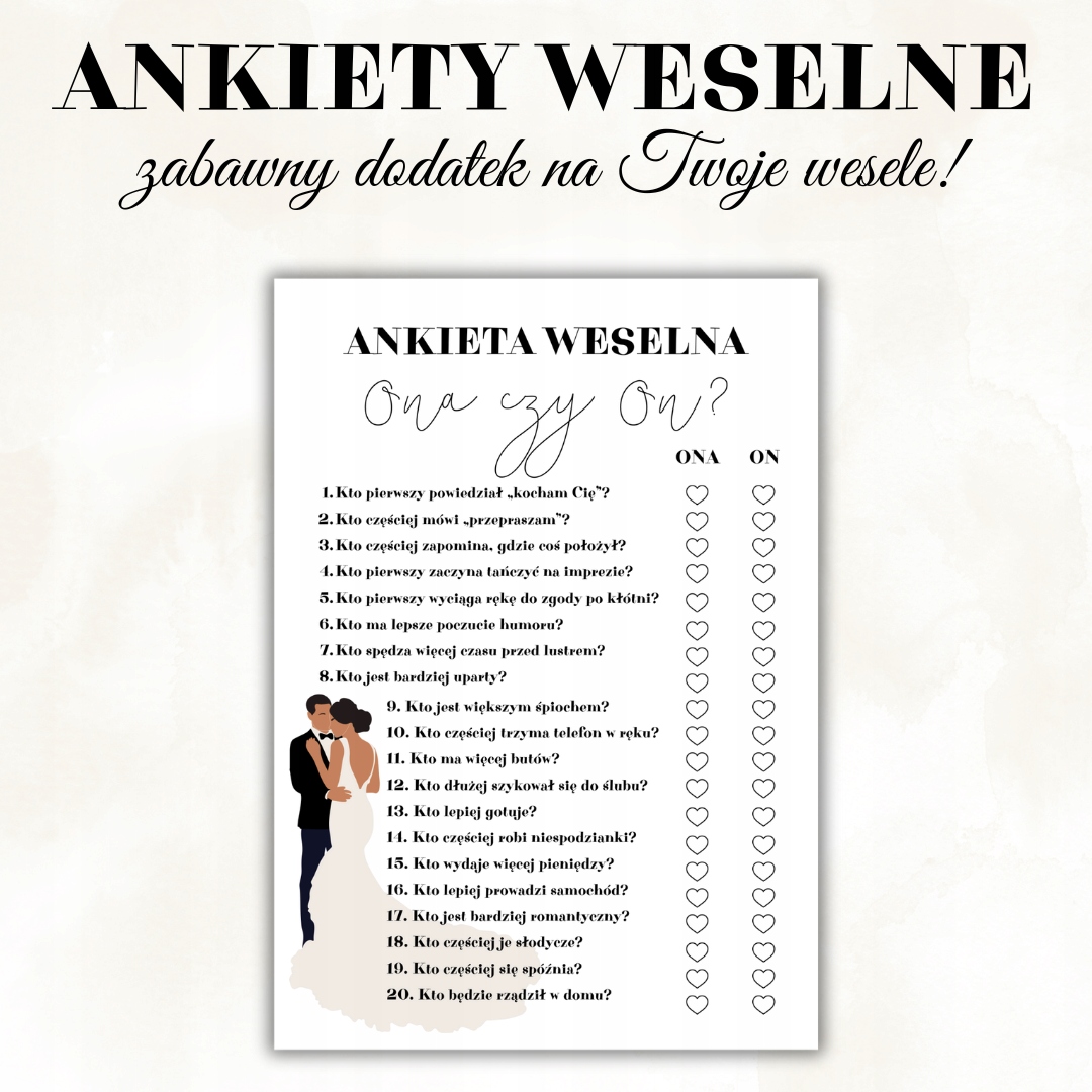Ankieta weselna dla Gości weselnych RÓŻNE WZORY