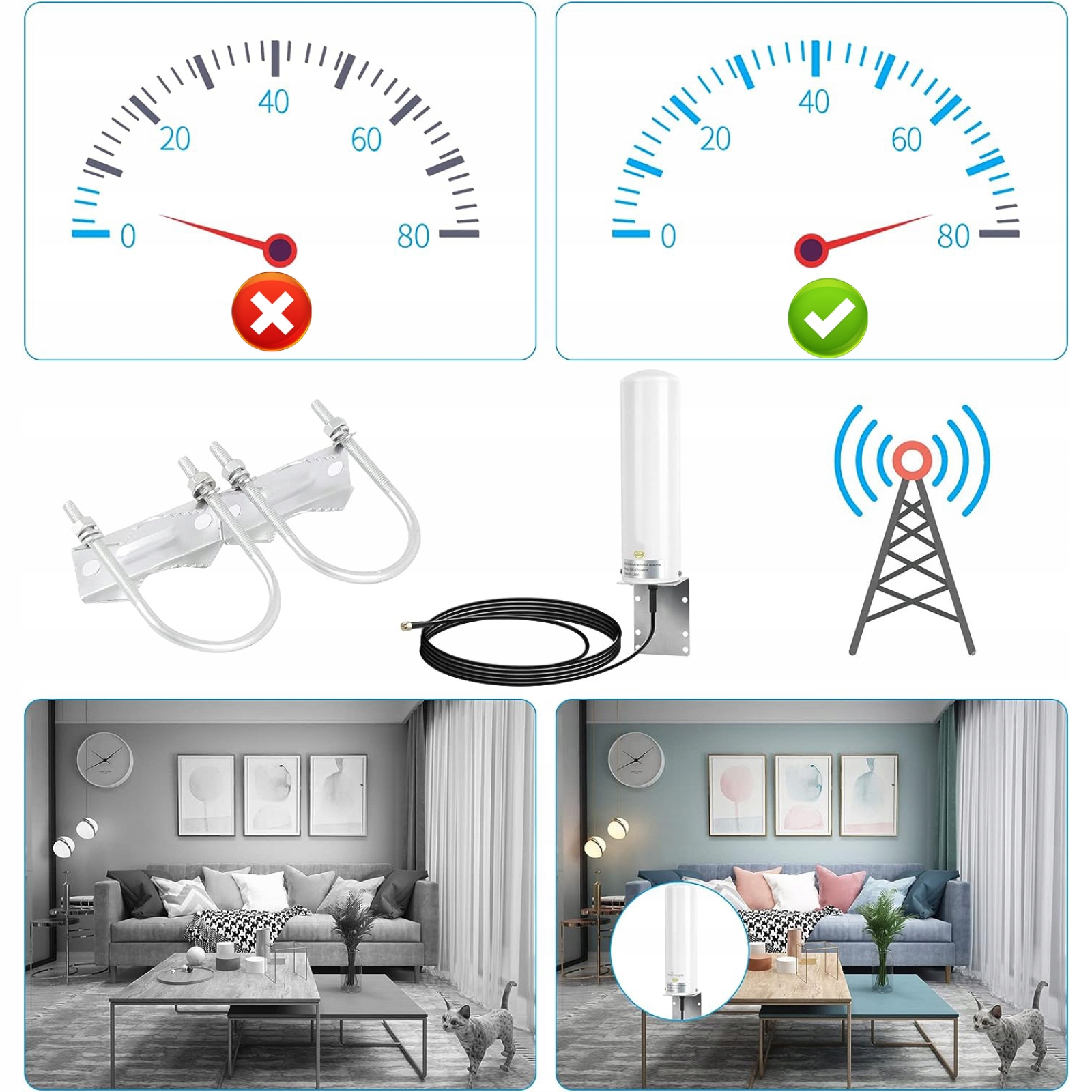 🔔- Предназначен для сложного приемаLTE сигнала в помещении, улучшает прием и скорость при правильном положении и высоте.