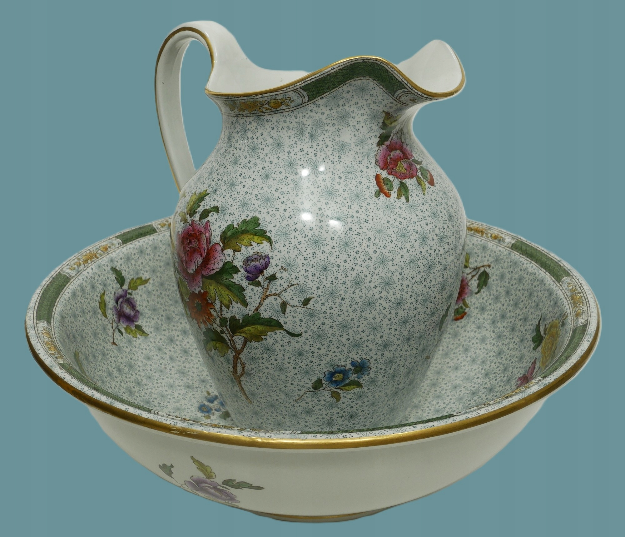 Античный - туалетный кувшин с миской - Китай Cauldon -1904-20
