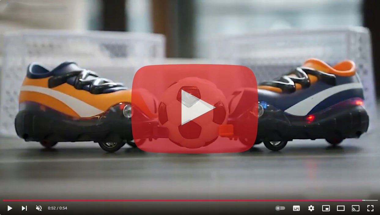 Детские игрушки становятся все более инновационными, и показанные на фотографиях футбольные бутсы с дистанционным управлением прекрасный пример творческого подхода к развлечениям.