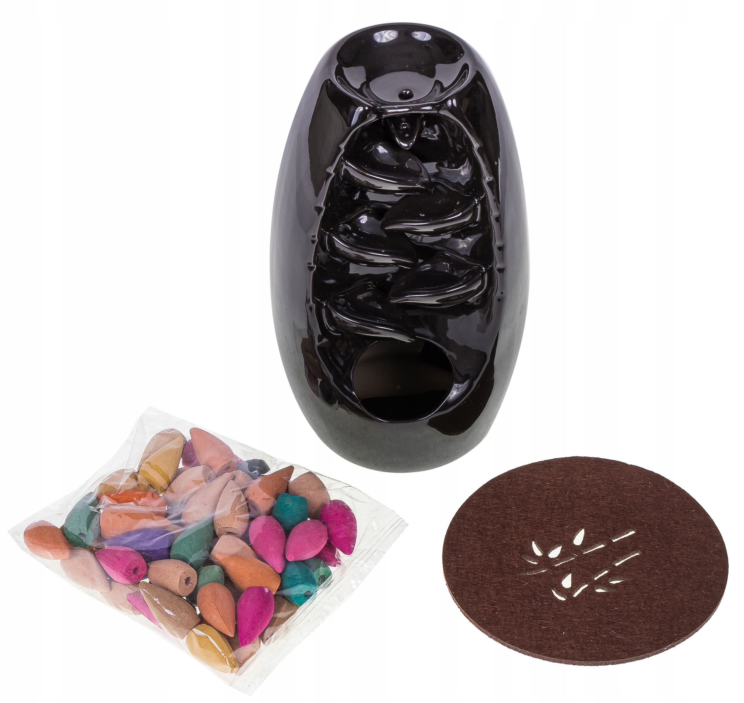 Благовония, сформированные в форме конуса, благодаря своей структуре обеспечивают эффективный поток дыма вниз по камину - подобно водному каскаду.