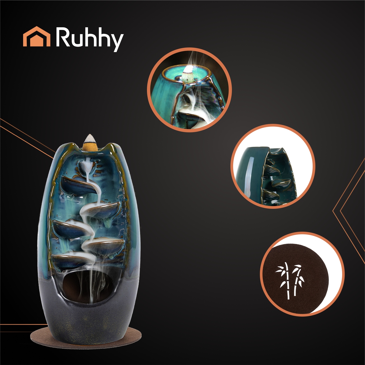 камин, аромат, керамический водопад, ладан + владельцы, дым, набор благовоний руххи - полный контроль над запахом и атмосферой, без усилий! h1>