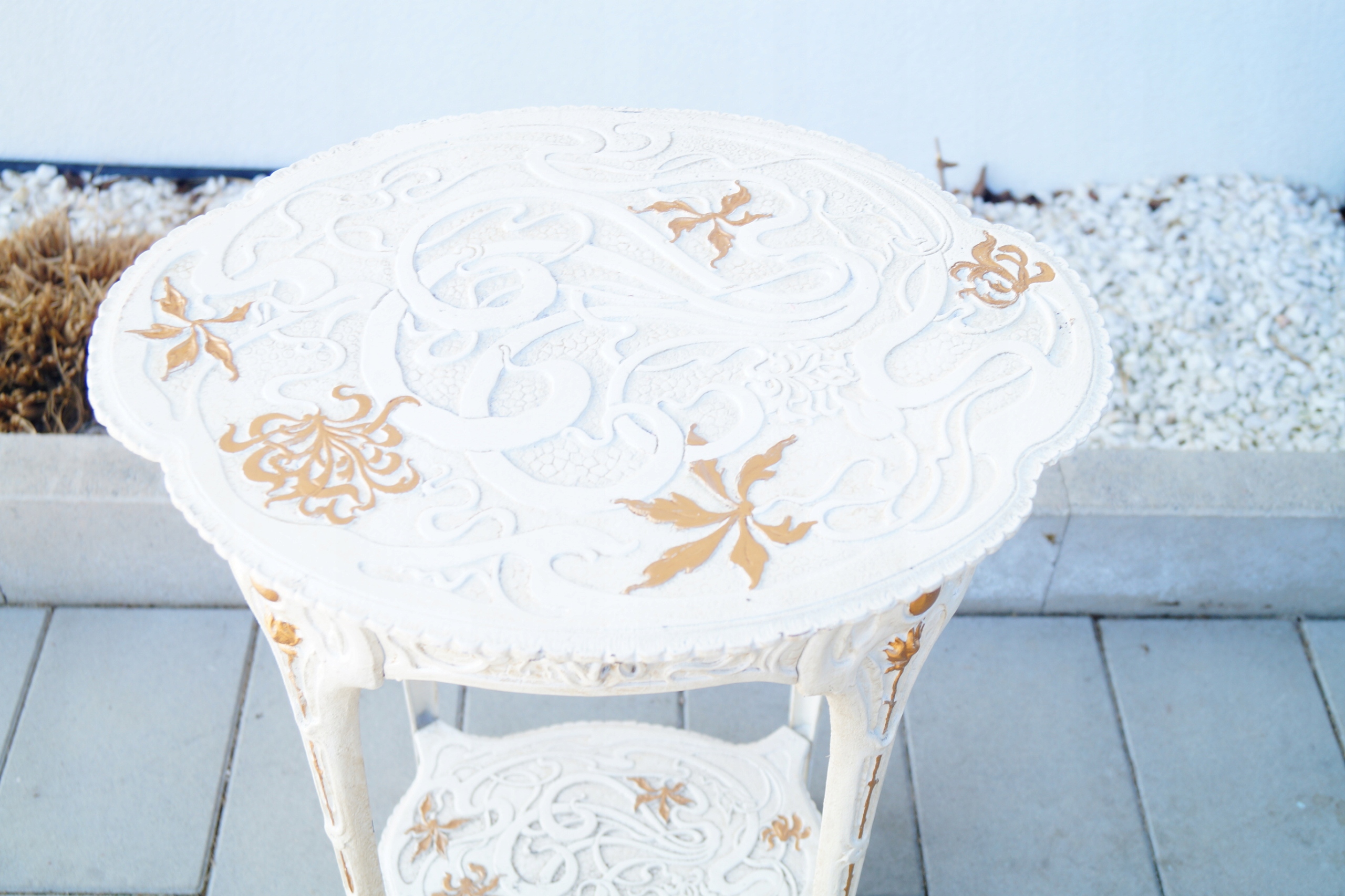 Чугунный стол в стиле модерн с массивными украшениями из белого чугуна