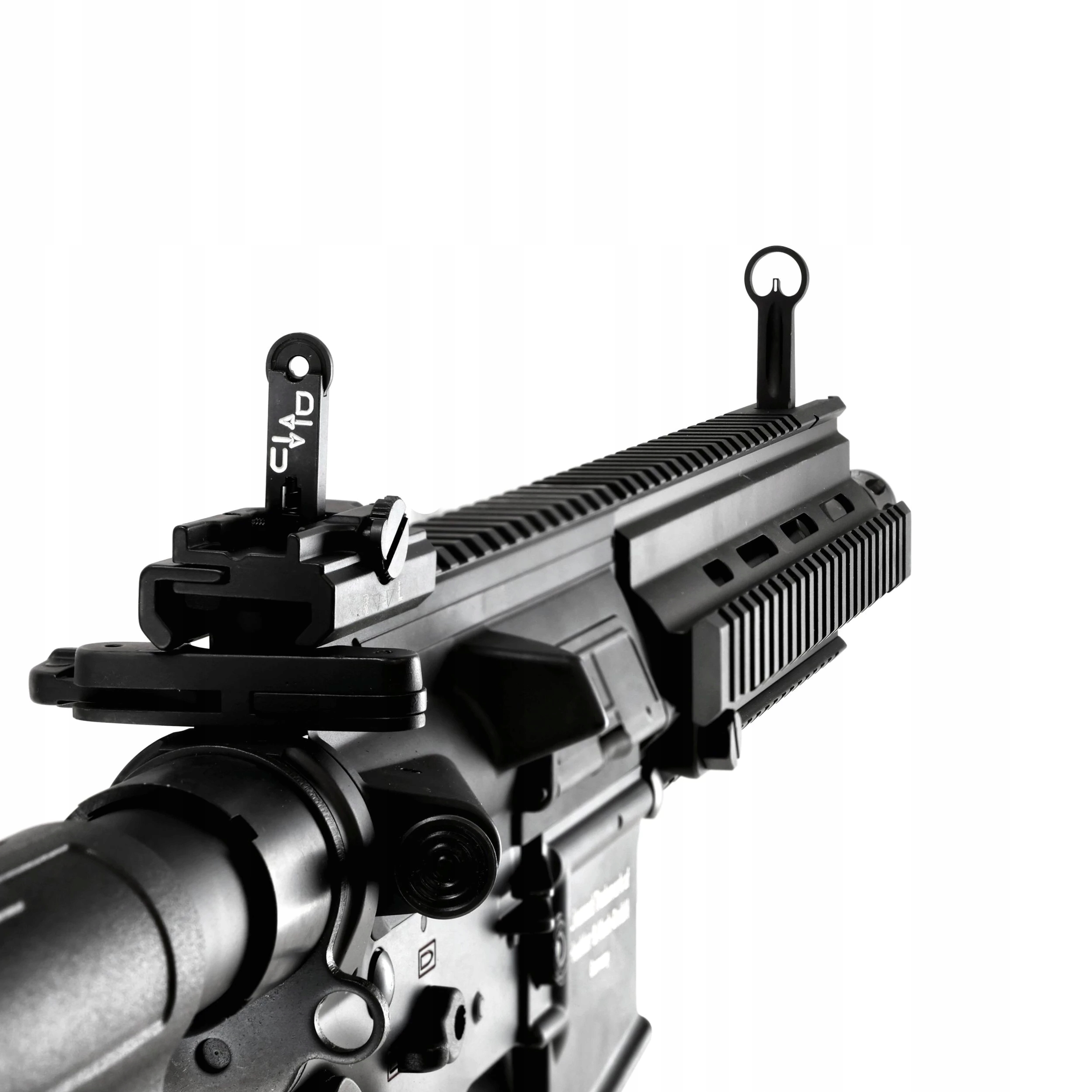 h & k HK416 A5 6 мм был почти полностью из металла . Полимер представляет собой пистолетную ручку и новый тип HK. Переключательные прицелы (складывание), которые после прикрепления коллиматора могут действовать в качестве запасных инструментов.