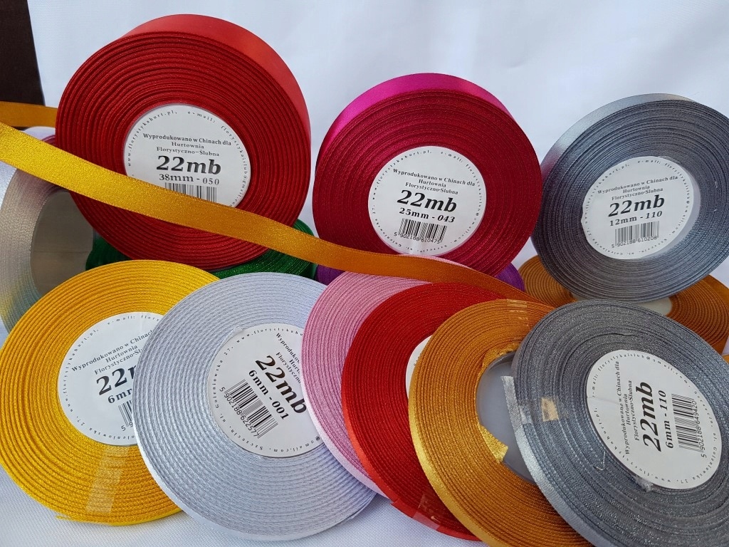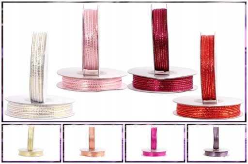 Атласная атласная лента золотые полосы 3 мм / 45 м 8kol.