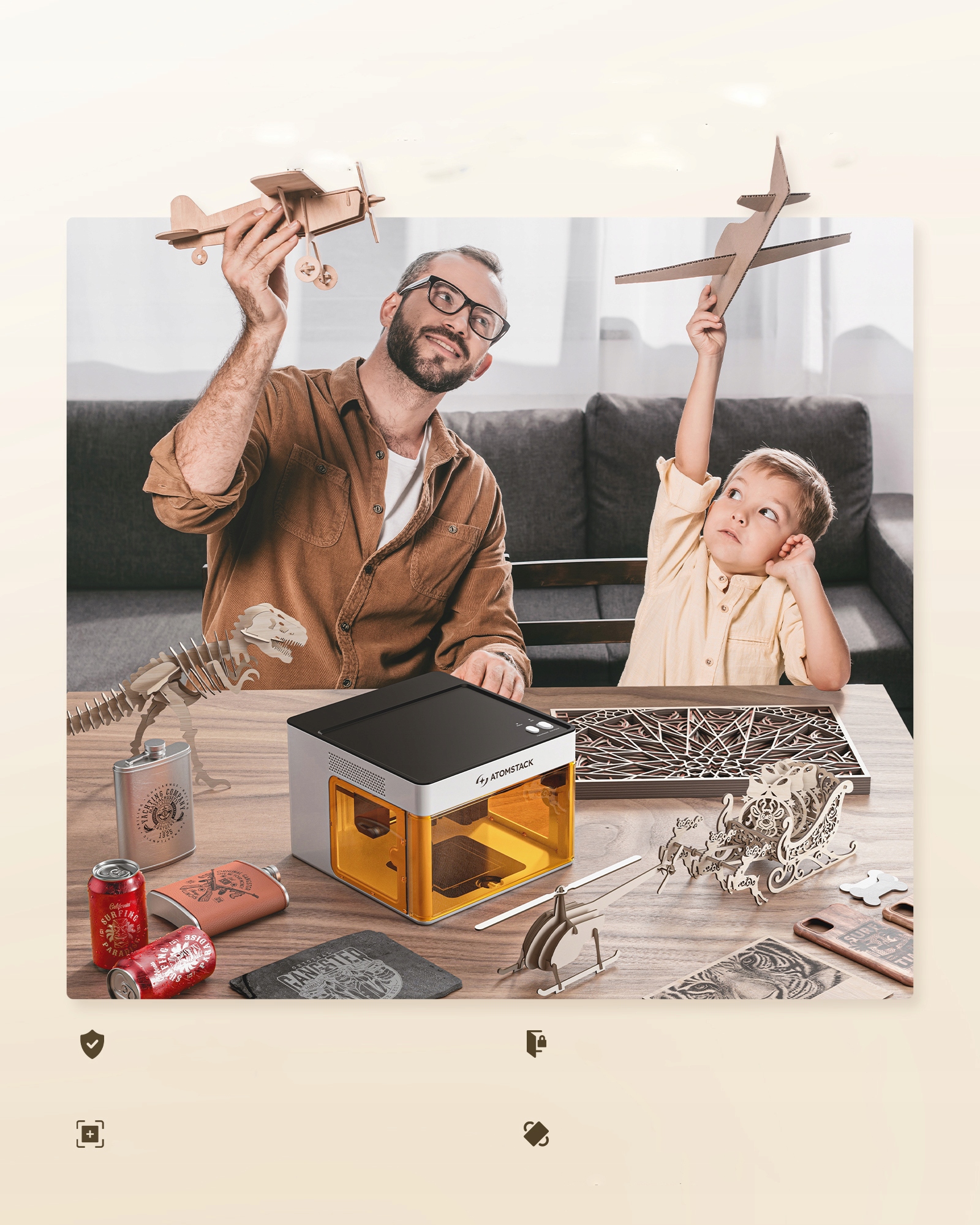 The Atomstack P1 engraving is ready for use immediately after removing from the box, with an engraving area of 110 x 110 mm, compact size (265 x 303 x 185 mm) and a weight of about 3 kg, which makes it ideal for home, workshops, exhibitions, exhibitions, exhibitions, exhibitions, exhibitions, Выставки, выставки, выставки, выставки, выставки, выставки, выставки, выставки, выставки, выставки, выставки, выставки, выставки, выставки, выставки, выставки, выставки, выставки, выставки, выставки и другие. Его портативная конструкция позволяет вам взять его с собой и начать создавать, даже в жестких пространствах, без предрассудков к функциональности.