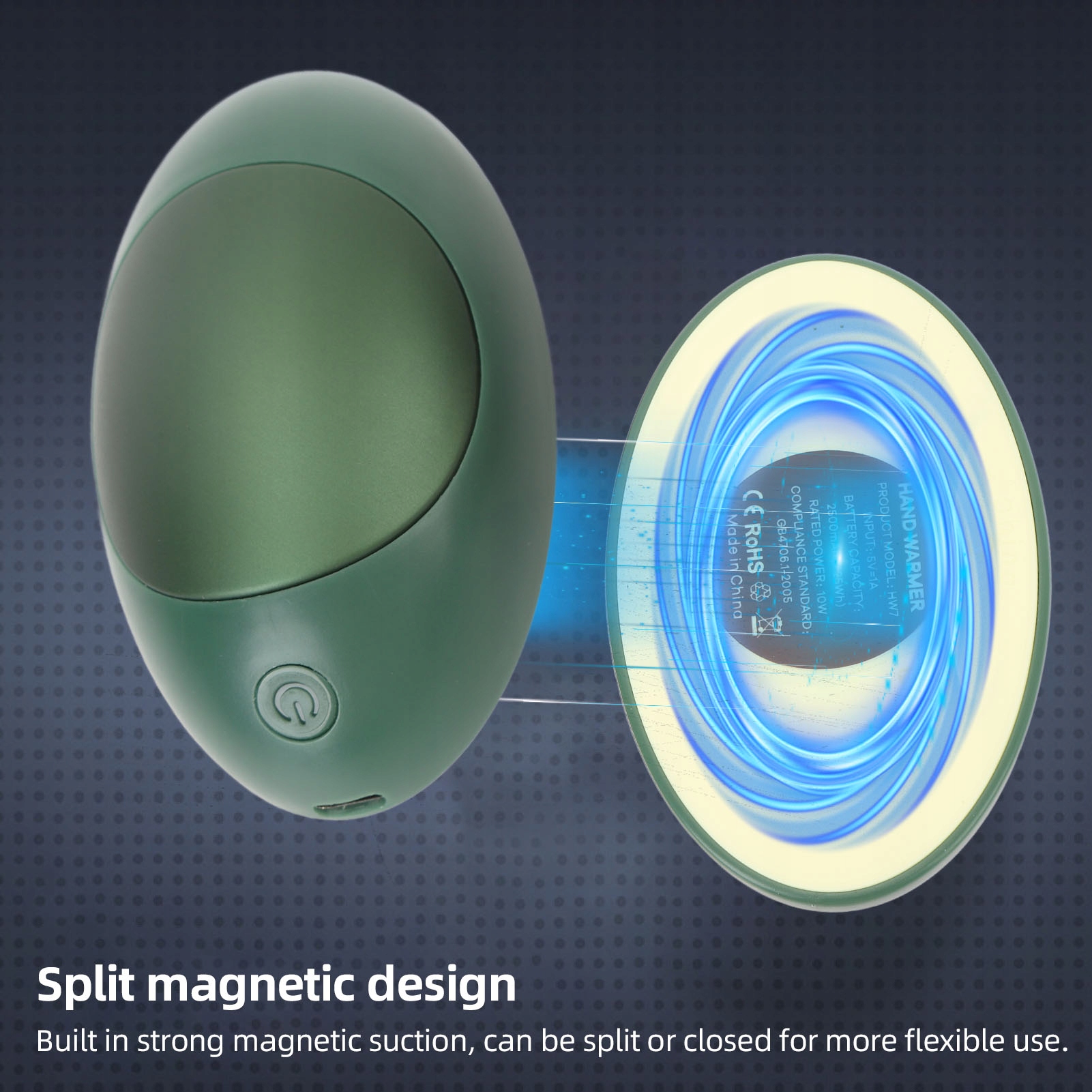 1. Диренариальная магнитная структура: ручный обогреватель принимает разделенную магнитную структуру, под притяжением супер магнетизма нагреватель Дони может быть подан в размеры дони или может быть связан до двух и помещен в карман курток или перчатки. Вы можете поделиться этой жарой со своей семьей.