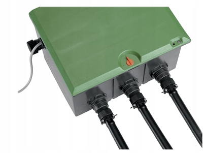 Автоматическая клапанная коробка GARDENA V3 позволяет установить три автоматических клапана 24 В (арт. № 1278) или три автоматических клапана 9 В (арт. № 1251). Вода может подаваться в бокс с трёх сторон. Поворотное телескопическое соединение обеспечивает легкую сборку и разборку. Водозащищенная соединительная планка позволяет легко подключать кабели 24 В. Центральный дренажный клапан позволяет опорожнить трубу подачи воды до первых заморозков. Для безопасности детей крышка оснащена замком. Внешняя резьба 1 дюйм.