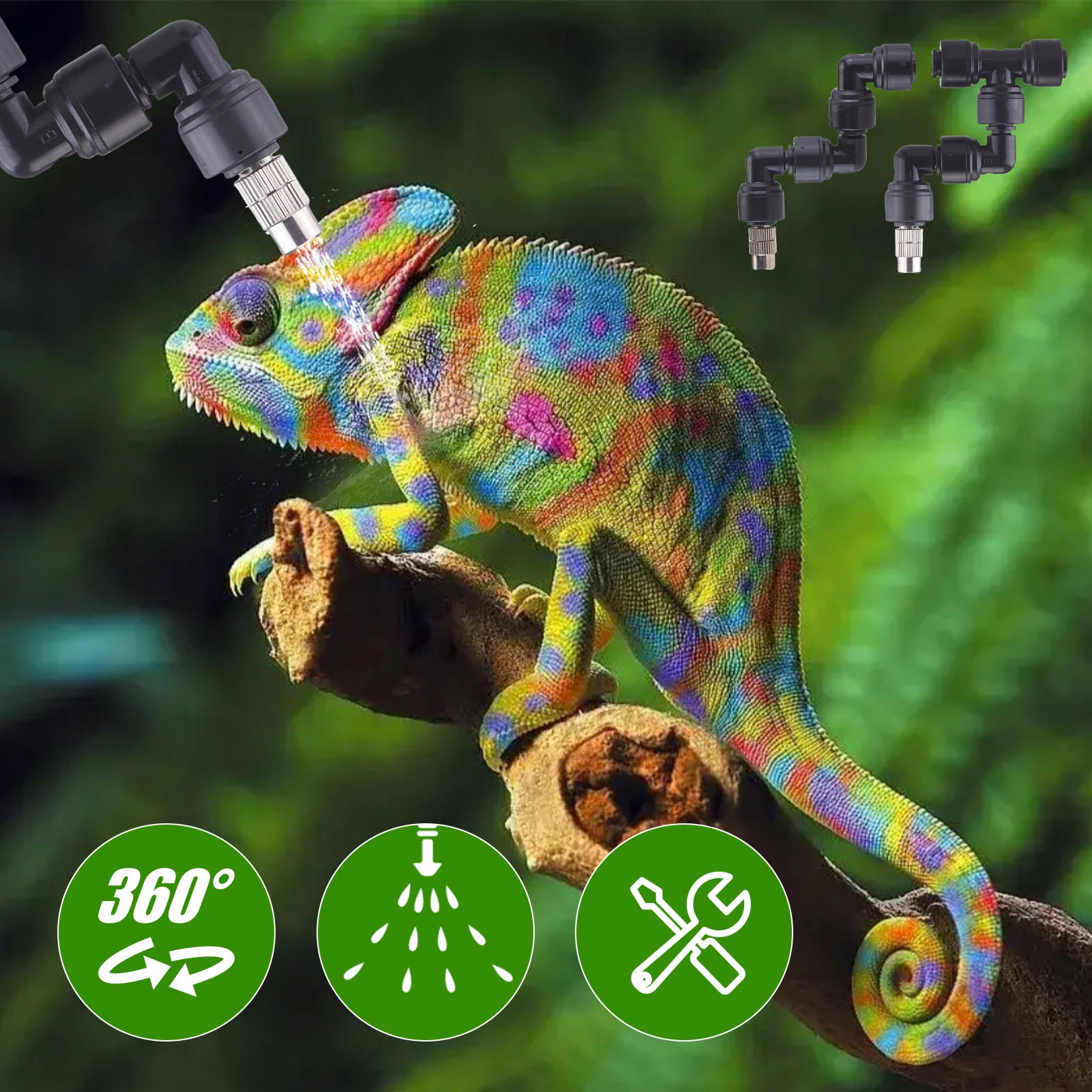 3. 360 ° Регулируемые форсунки: автоматическая система полива оснащена двумя регулируемыми сопла, которые вращаются на 360 °. Отрегулируйте направление распыления и длину трубки к воде, чтобы покрыть каждый угол террариума или сада, обеспечивая оптимальную влагу для всех растений.