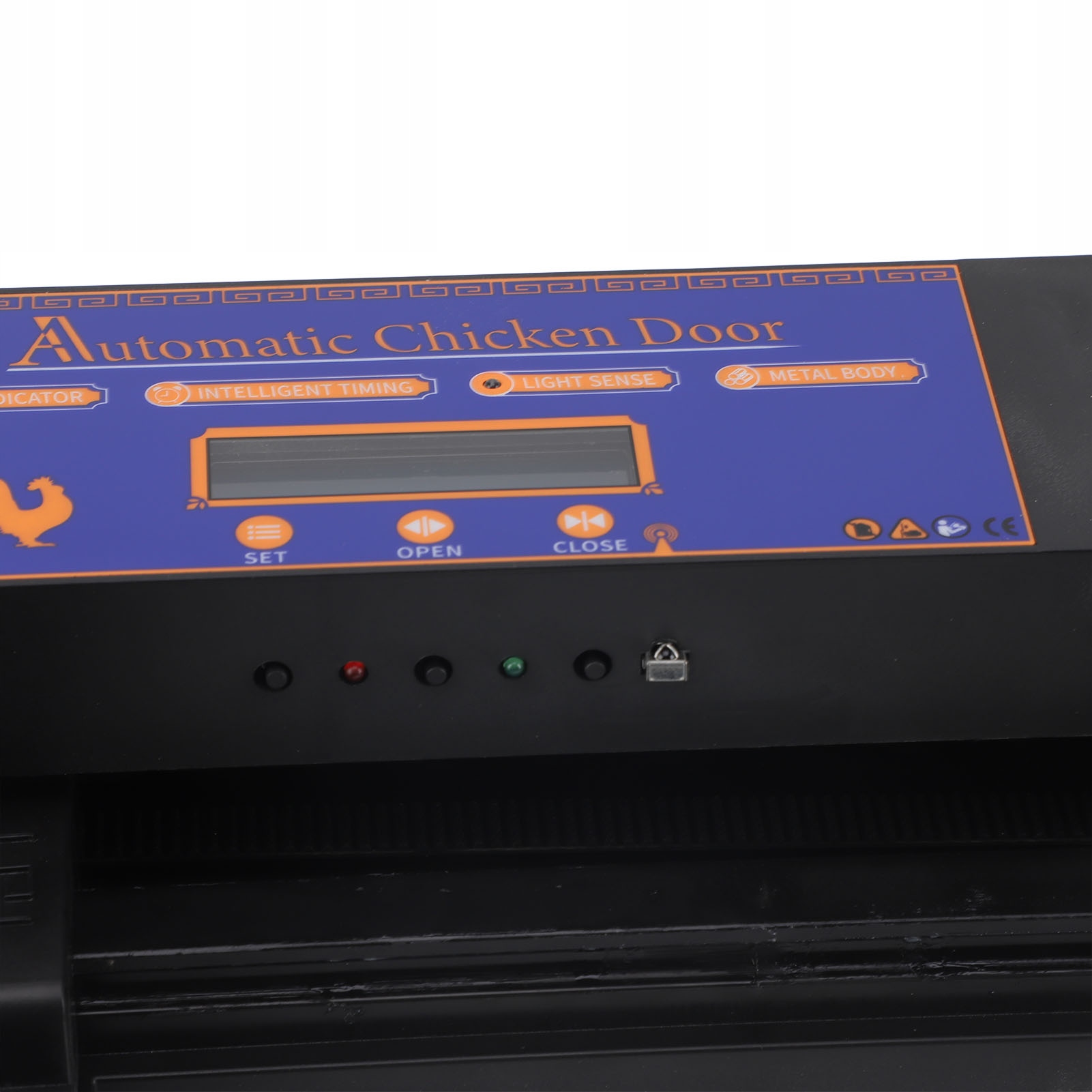 Функция: 1. [Интеллектуальный механизм открытия дверей] Благодаря этому механизму открытия двери вы предоставите своим цыплятам, уткам и гусиным кудам и выходите на улицу без необходимости открытия и закрытия вручную.