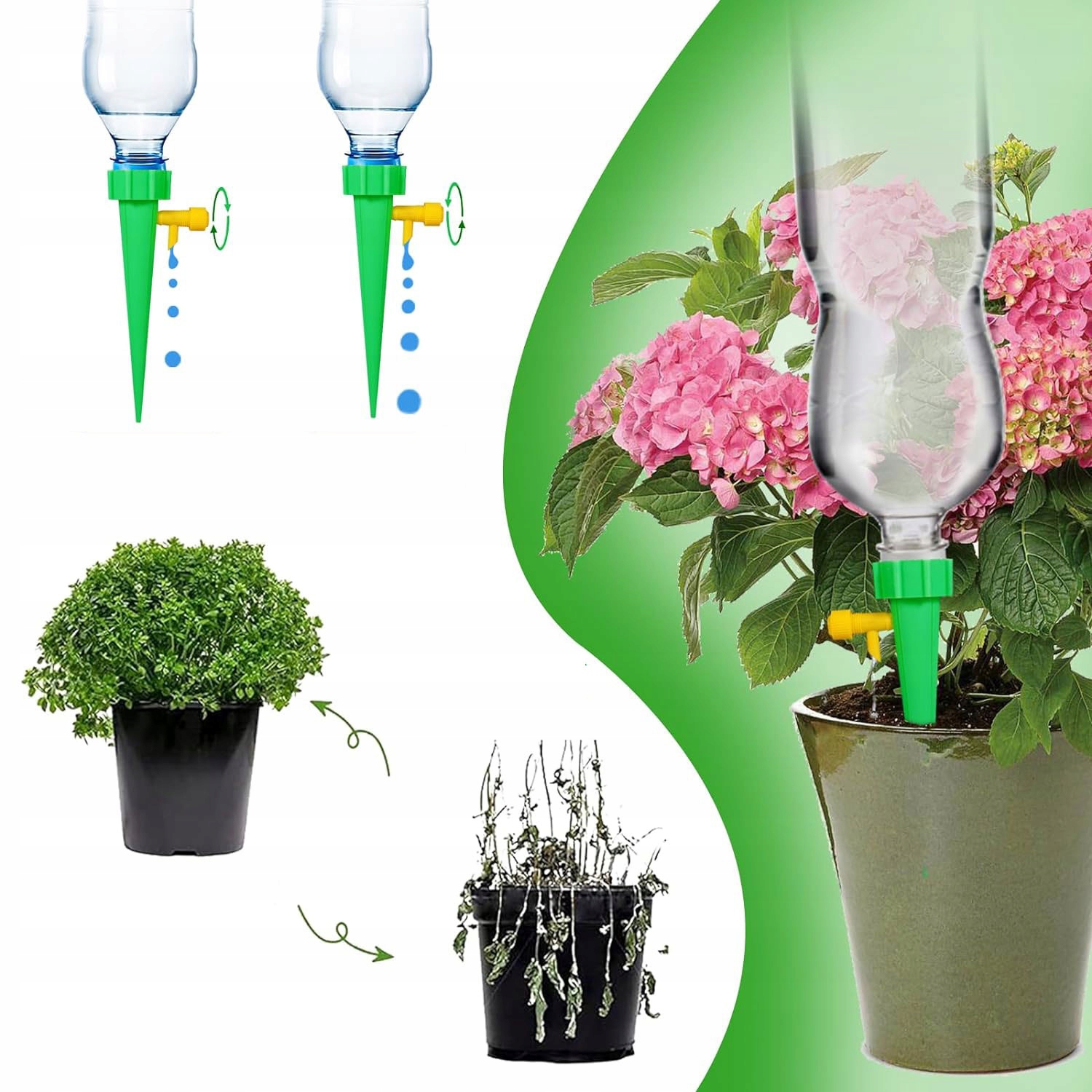 💧💧【 Используйте】 Устройство для водопоя растений обеспечивает воду непосредственно корням растений, подходящих для большинства растений. Легкий контроль потока означает, что растения получают правильное количество воды.