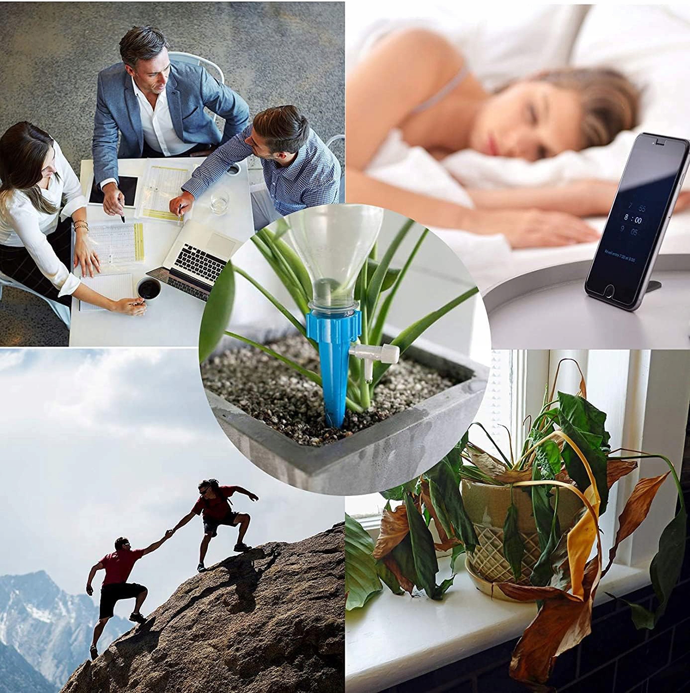 💧💧【 Независимый полив】 благодаря этому контроллеру капель цветка, вам не нужно ухаживать за цветами или растениями в течение нескольких дней, просто положите шипы в растение в горшках на корень.
