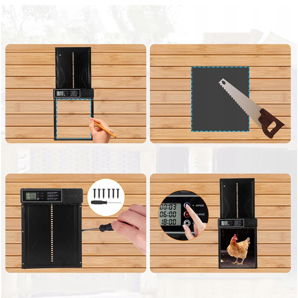 Откройте для себя новое измерение простоты благодаря нашей автоматической куриной двери. Очень интуитивно понятный ЖК -дисплей делает игру для инсталляции. Забудьте о сложных конфигурациях и запрограммируйте часы открытия и закрытия в мгновение ока.