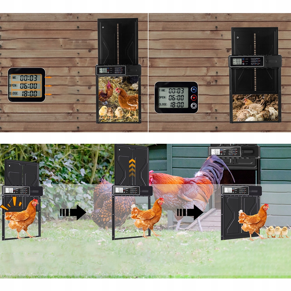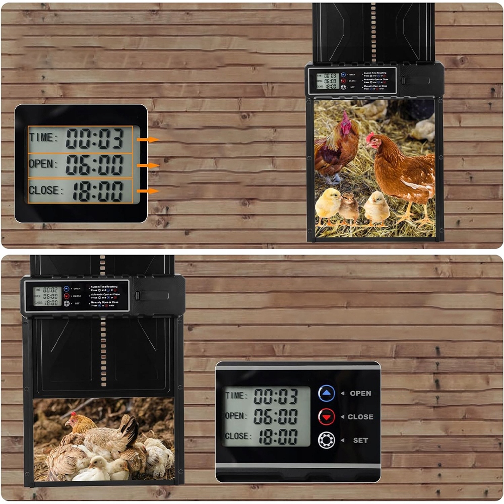 Откройте для себя новое измерение простоты благодаря нашему автоматическому лоскуту для цыплят. Ультратер -ЖК -дисплей обеспечивает легкую установку. Забудьте о сложных конфигурациях и запрограммируйте время открытия и закрытия в мгновение ока.