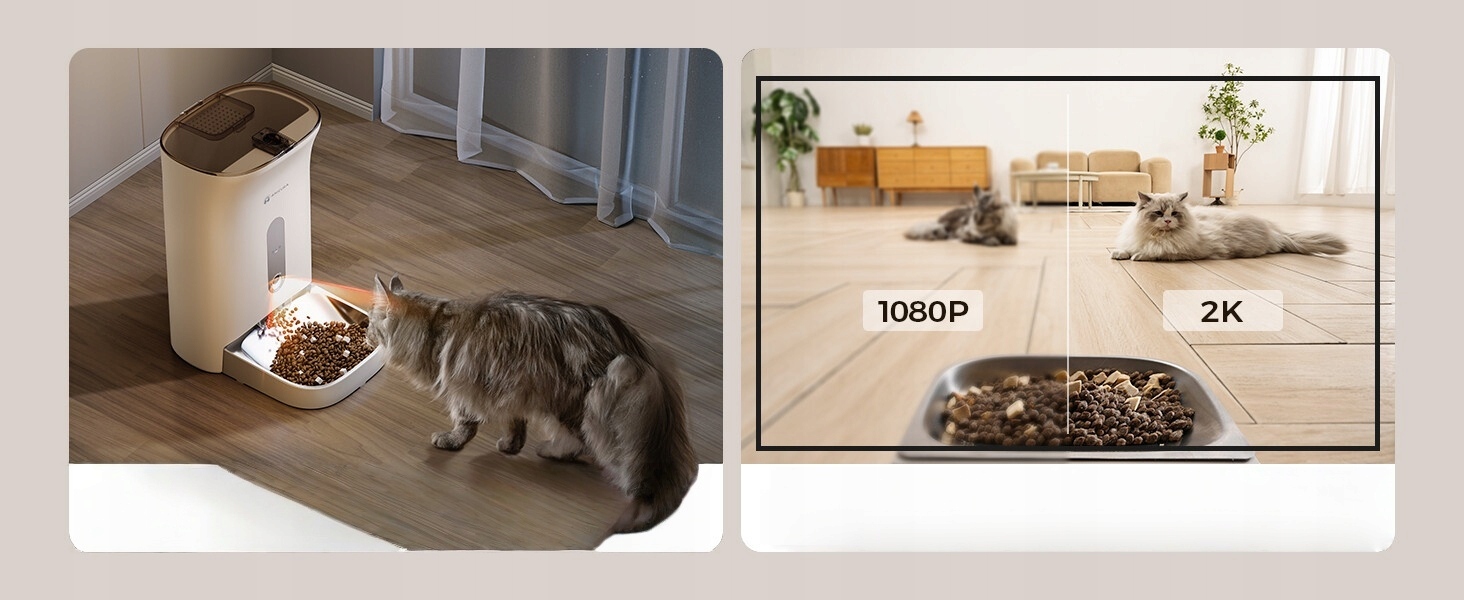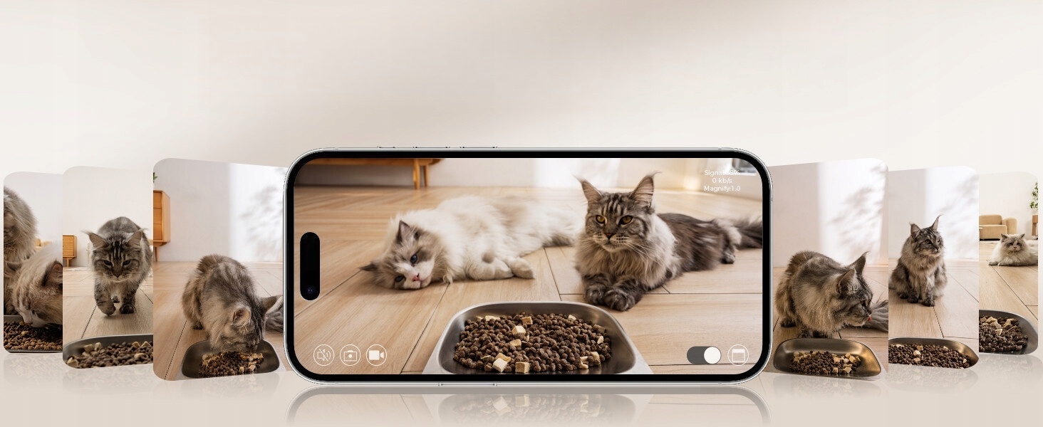 камера 160 ° шириной -глета с ночным видением, записывает фильмы 2k hd вокруг часов в виде автоматического фидера для кошек . Управляемый объектив позволяет провести подробный мониторинг чаши (видимые порции пищи), не мешая частным жилым районам. снимки с выдержкой выполняются при перемещении кошек, а режим конфиденциальности может быть активирован через приложение.