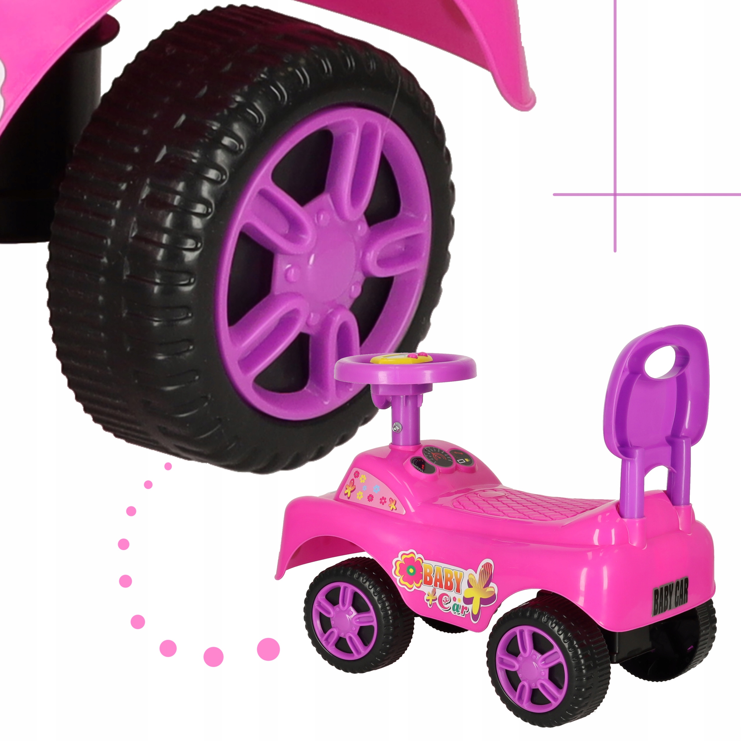 , созданный для детей в возрасте 12 месяцев, поездка имеет удобный спинок b>, благодаря которому ребенок может сидеть безопасно и комфортно. стабильная конструкция и широкие колеса обеспечивают безопасность во время вождения. Радостные смайлики и интенсивный розовый цвет бросают глаза и делают веселье еще более приятным.