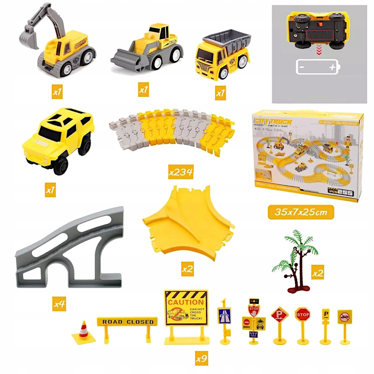 Автомобильная трасса CITY TRUCK состоит из 255 элементов, которые легко собираются и разбираются в любых конфигурациях, а это значит, что форма и Конечный эффект зависит только от безграничной фантазии ребенка.