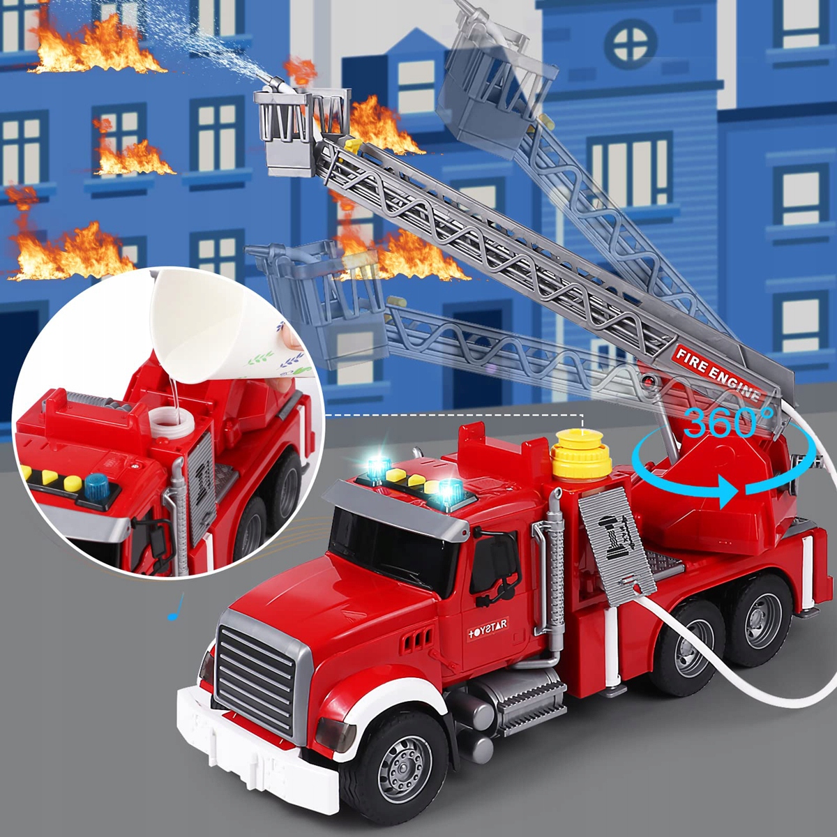 1 * Многофункциональная пожарная машина с инерционной лестницей, вращающейся, распыляющей водой, звуковой и легкой автомобиля для мальчиков (сухие батареи не включены)