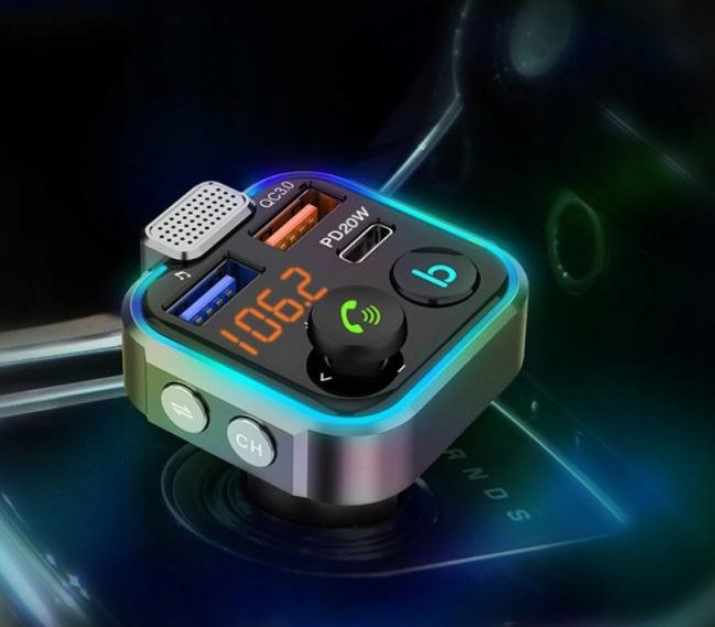 Bluetooth Audio FM MP3 BT передатчик с 3 разъемами USB QC 3.0 для быстрой зарядки и RGB-подсветкой