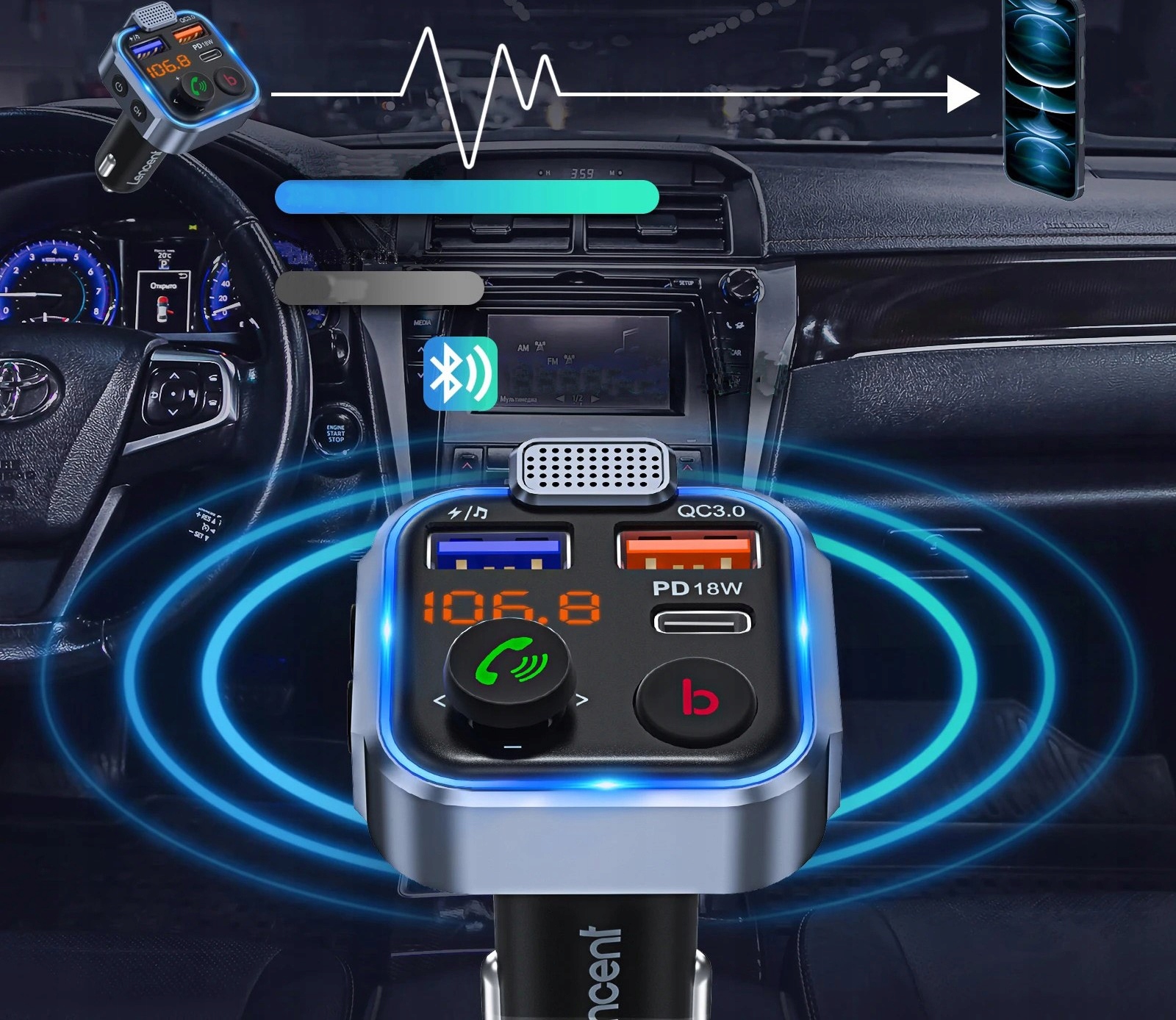 ➡️Передатчик Bluetooth Audio FM MP3 — это современное многофункциональное устройство для автомобиля, позволяющее без проводов воспроизводить музыку, заряжать устройства, а также обрабатывать телефонные звонки в режиме громкой связи. Благодаря технологии Bluetooth 5.0 и системе Bass Boost передатчик обеспечивает чистый и сильный звук без помех и дополнительно совместим с голосовыми помощниками Siri и Google Assistant.