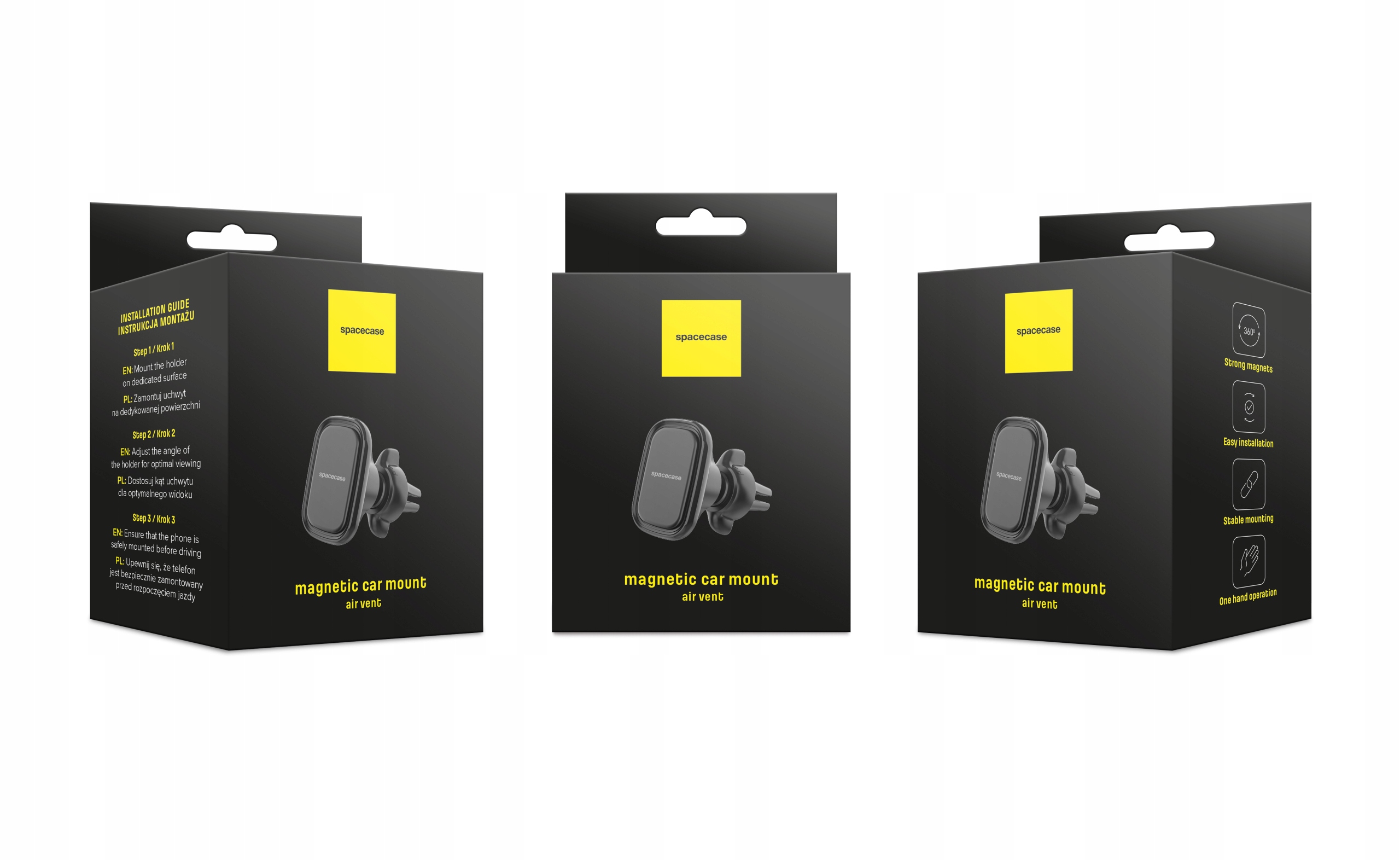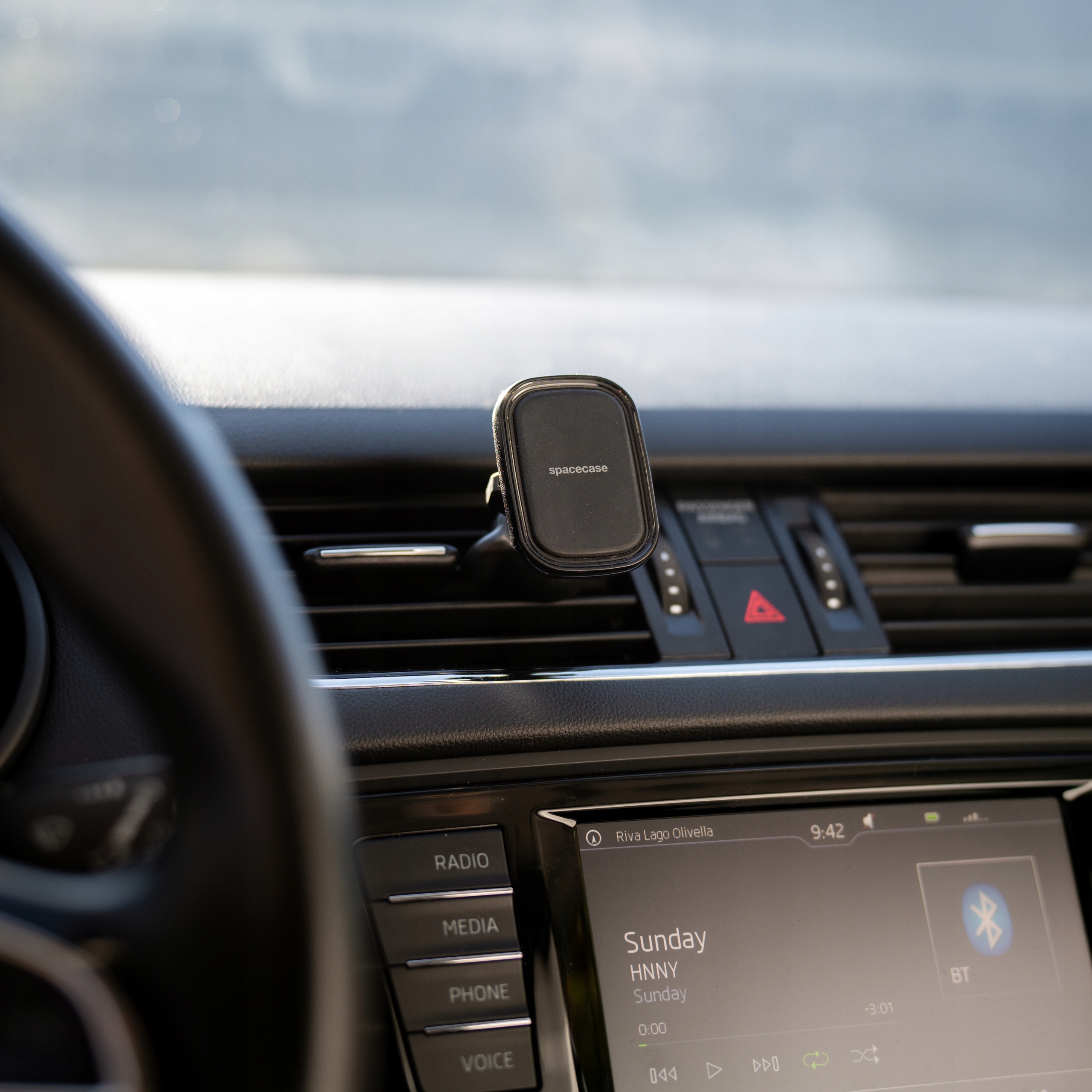Современный и стильный Магнитный держатель Spacecase. Имеет сильный магнит и крепежный элемент для воздухоотводчика с вращающейся головкой. В комплект входит набор пластин, благодаря которым держатель можно использовать на любом телефоне!