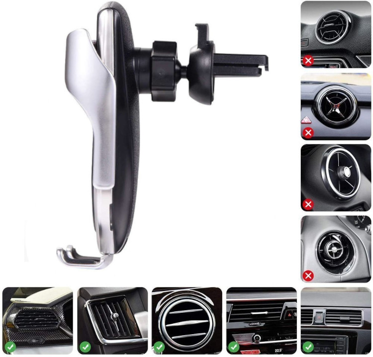 Беспроводное автомобильное зарядное устройство Qi — это устройство 2 в 1. Он сочетает в себе держатель телефона с вентиляцией и беспроводное зарядное устройство. Он имеет встроенный интеллектуальный чип с защитой от короткого замыкания, перегрузки, чрезмерного потребления тока или слишком высокой температуры.