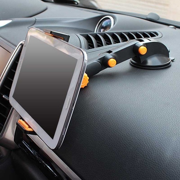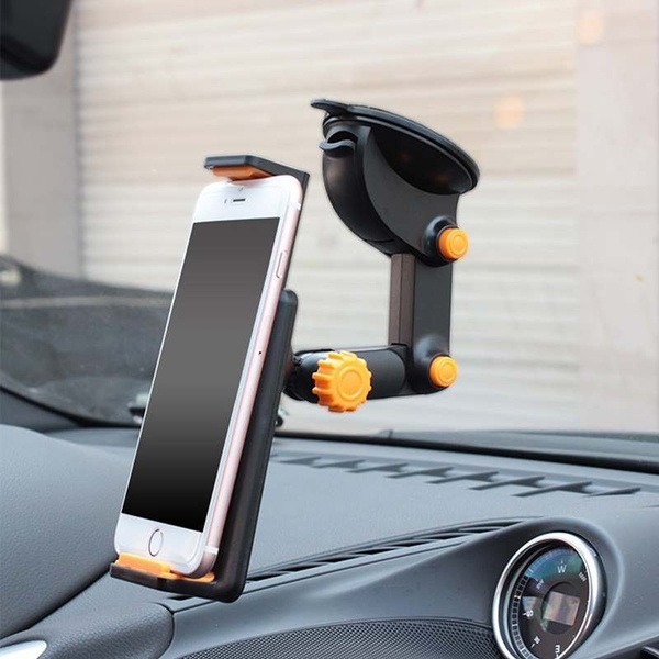 Супер ручка. Вы можете установить планшет или телефон вертикально или горизонтально. В каждой желтой точке способность регулировать. Возможность наклонить телефон и таблетку с солнца. Он хорошо придерживается обивки после увлажняющей части всасывающей чашки.