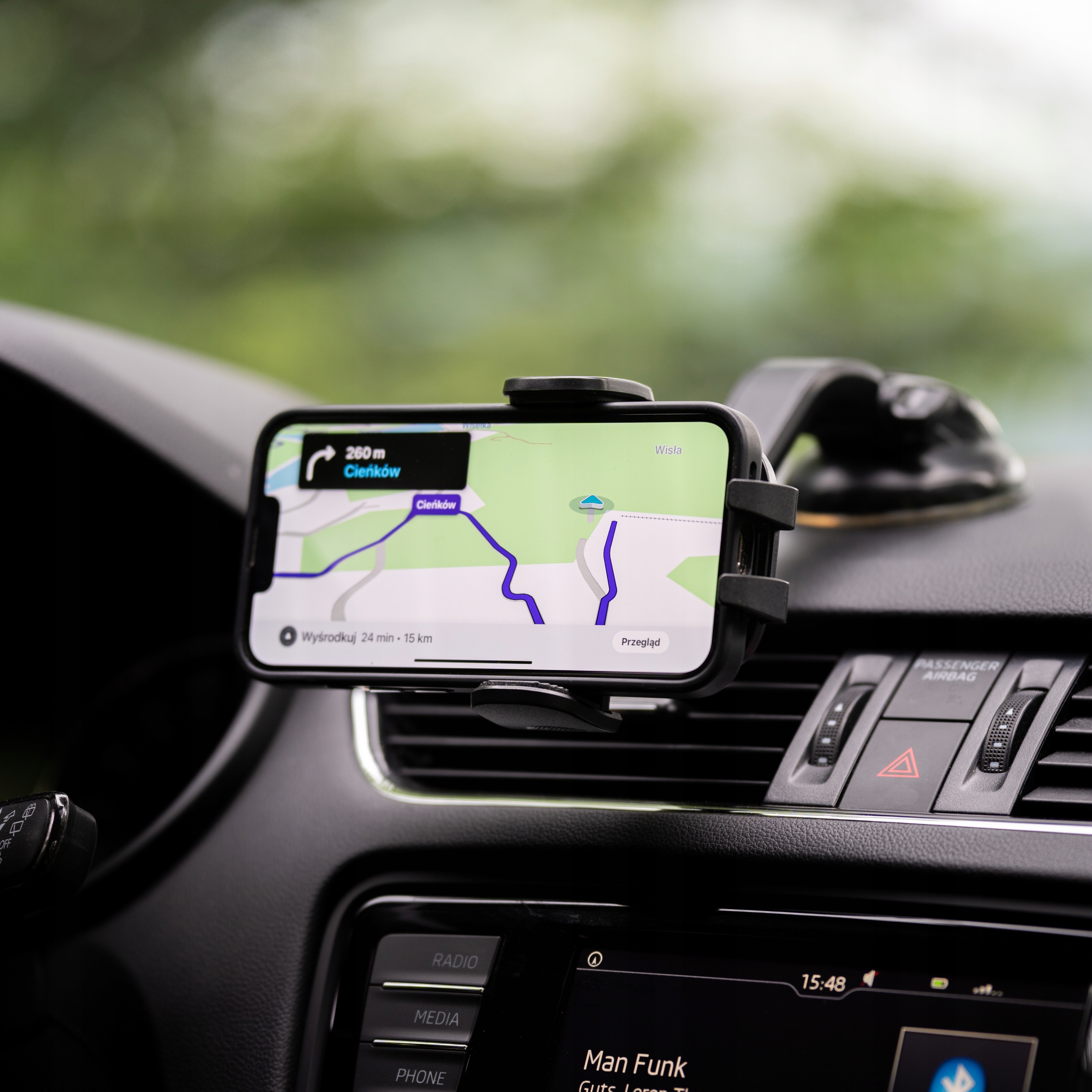 Устройство, установленное на профилированной стреле, не ограничивает поле обзора во время движения. Сам держатель дополнительно оснащен поворотной головкой, позволяющей установить телефон в любом положении. Идеальное решение для водителей, которые не хотят или не могут устанавливать держатель на дефлектор и в то же время не хотят ограничивать поле зрения во время вождения.