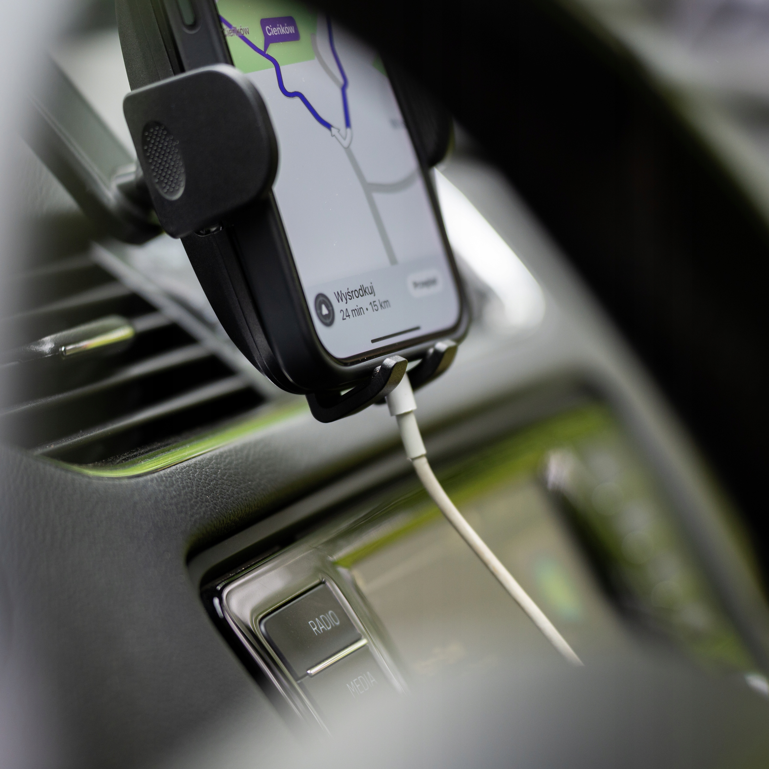 Рукоятка обеспечивает оптимальное положение для зрения водителя, что повышает безопасность вождения. Телефоном можно управлять одной рукой, практически не отрывая глаз от дороги. Это одновременно удобное и безопасное решение для пользователей.