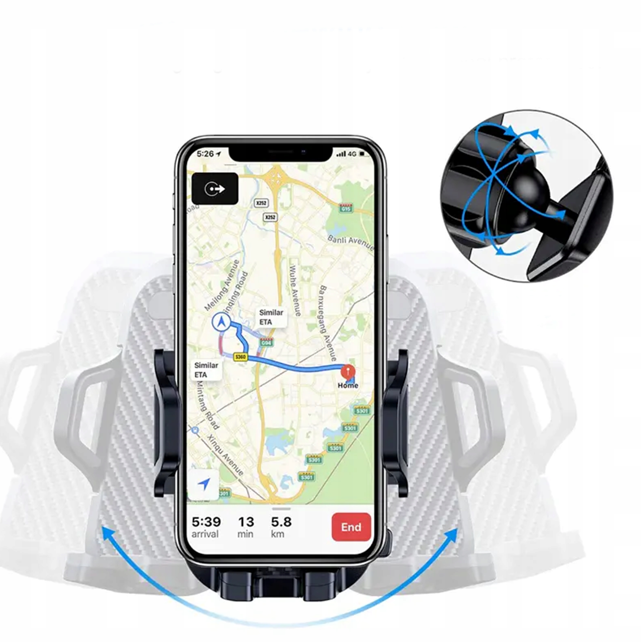 Это универсальный держатель, который можно закрепить на различных поверхностях в автомобиле, например, на лобовом стекле, в кабине. или распределительный щиток приборной панели. Благодаря прочной конструкции и гибким механизмам держатель обеспечивает стабильное удержание телефона, минимизируя вибрацию во время вождения.